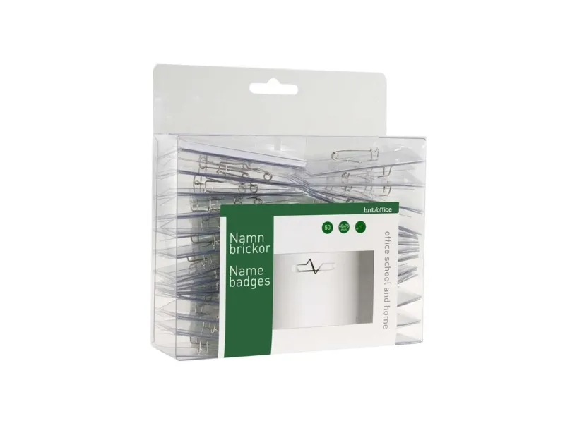 Kongressitarrat 40x75mm turvaneulalla ja insertillä - 50kpl Kongressitarrat 40x75mm turvaneulalla ja insertillä kävijöiden, konferenssin osallistujien jne. selkeään ja turvalliseen tunnistamiseen. Valmistettu PET-muovista uudelleenkäytettävyyden vuoksi. Kaikki tuotteen sisältämät kemialliset aineet on rekisteröitävä REACH-asetuksen mukaisesti.