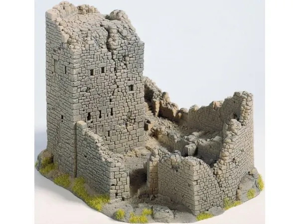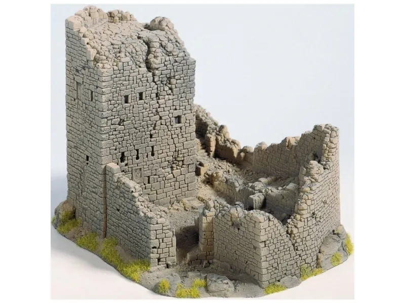 rakenteellinen kova vaahtomuovinen linnanraunio on jokaisen pienoisrautatieasetelman kohokohta. 180 x 140 mm:n pohjapinta-ala sisältää mahtavan historiallisen linnan tornin, rappeutuneet puolustukset ja täydellisen sisäpihan. Raunion realistisen kivirakenteen on suunnitellut tunnettu mallirakentaja Manfred Luft.