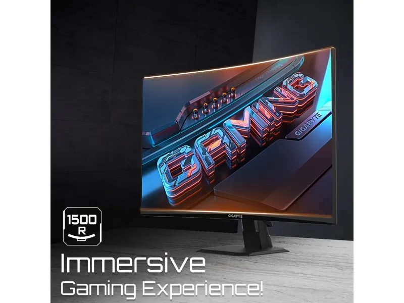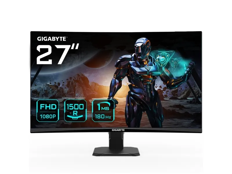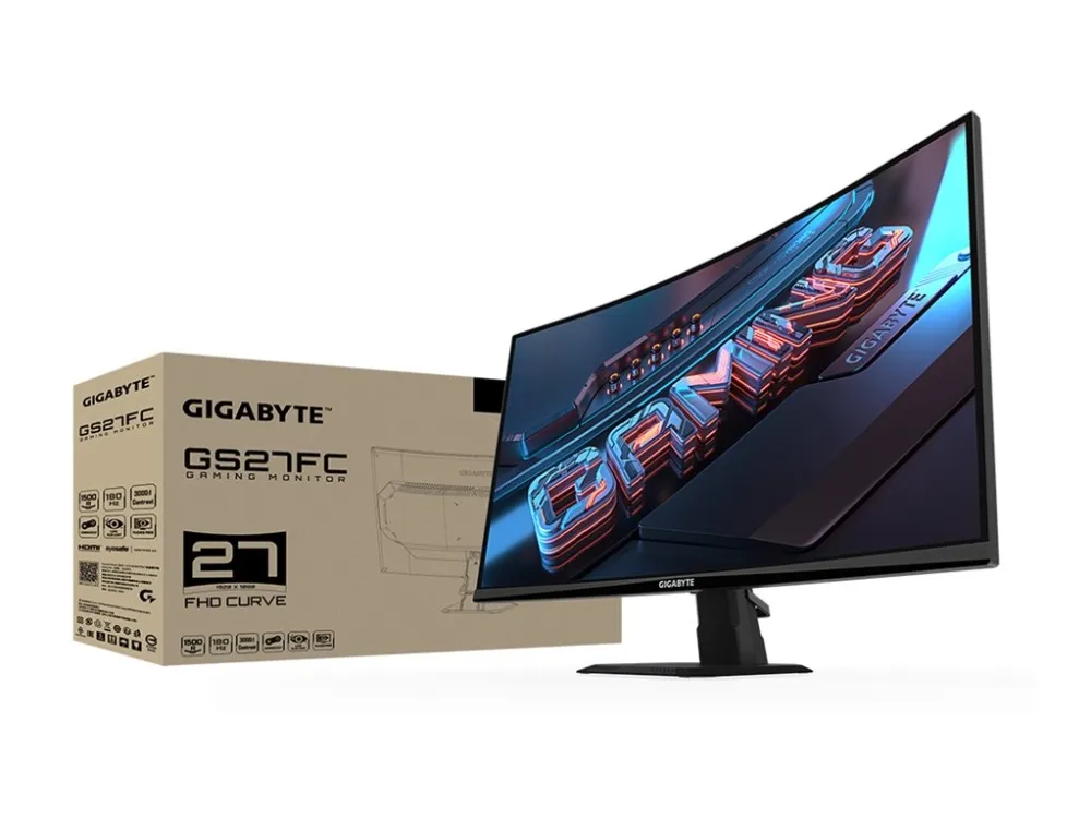 GIGABYTE GS27FC is designed to offer the most immersive viewing experience. The 1500R VA panel gives you an unprecedented gaming experience with a 180Hz refresh rate, better contrast ratio and 1ms response rate.GIGABYTE GS27FC 27" FHD Curved Gaming Monitor - 1920 x 1080, 180Hz, 1, 250 cd/m², FreeSync Premium, HDR Ready, HDMI 2.0, Displayport 1.4. Display diagonal: 68.6 cm (27"), Display resolution: 1920 x 1080 pixels, HD type: Full HD, Display technology: LED, Response time: 1 ms, Native aspect ratio: 16:10, Viewing angle, horizontal: 178°, Viewing angle, vertical: 178°. VESA mounting. Product colour: Black