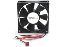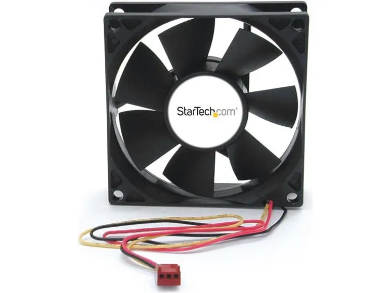 Add additional chassis cooling with a 80mm ball bearing fan. This versatile PC case fan measures 8cm x 8cm x 2.5cm (3 1/8" x 3 1/8" x 1"), designed to fit a broad range of computer case designs, helping to improve internal airflow within the computer case by circulating cool air into the case or exhausting warm air away from the computer. A quiet cooling solution, the 8cm dual ball-bearing fan features a high-efficiency blade design that's capable of moving 32 CFM throughout the computer case. This broadly compatible PC cooling solution can be powered through a simple TX3 (3-pin) connection to the computer power supply.