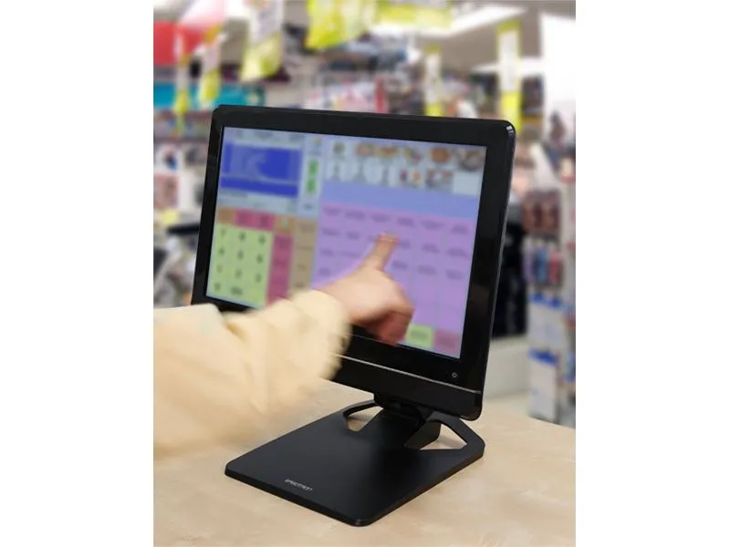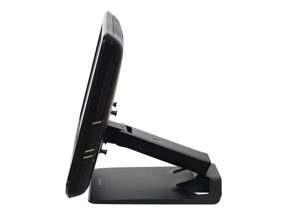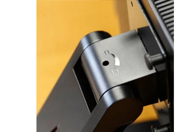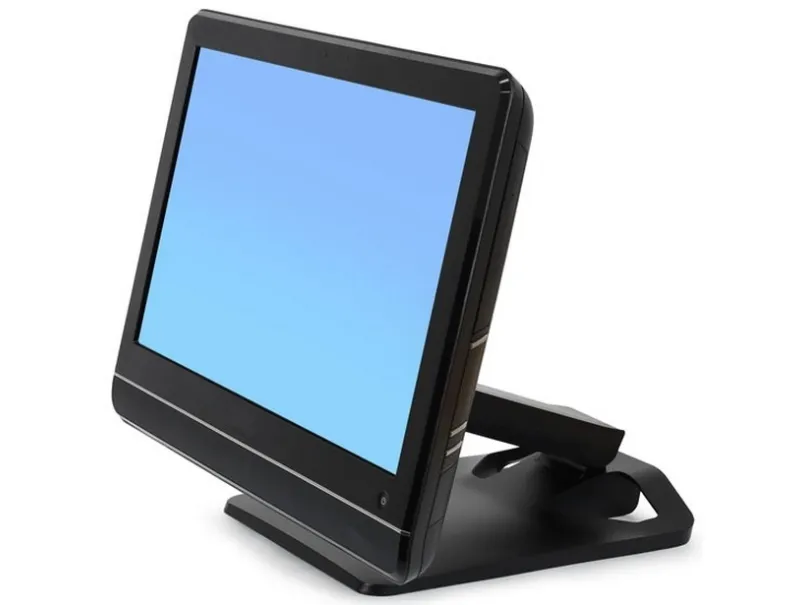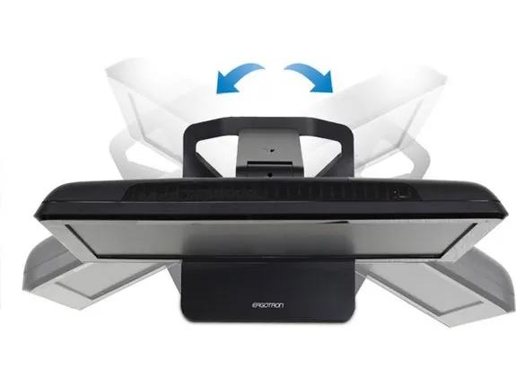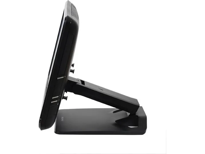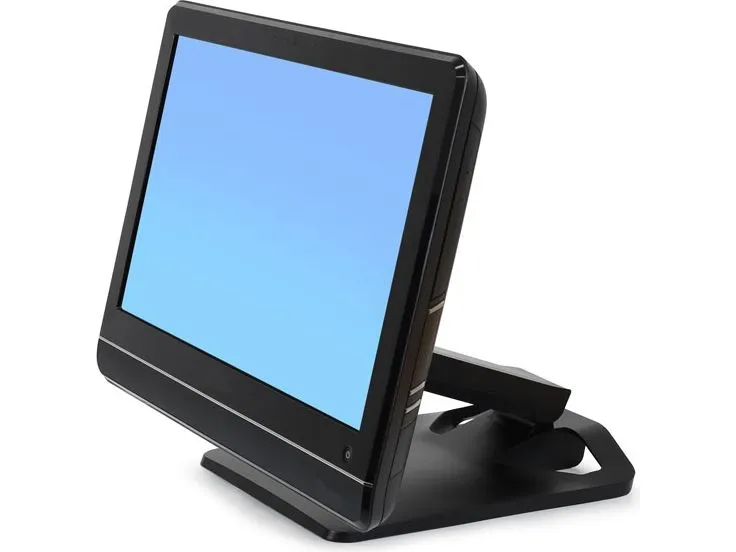 A robust hinge mechanism provides an incredible 115 degrees of tilt adjustment while simultaneously controlling monitor height. This flexibility allows the screen to be moved parallel with the desktop—perfect for touchscreen applications.