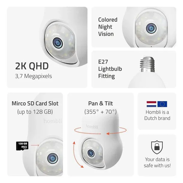 Hombli HBBU-0109 Bulb Cam 2K – Valvontakamera E27-kantaan