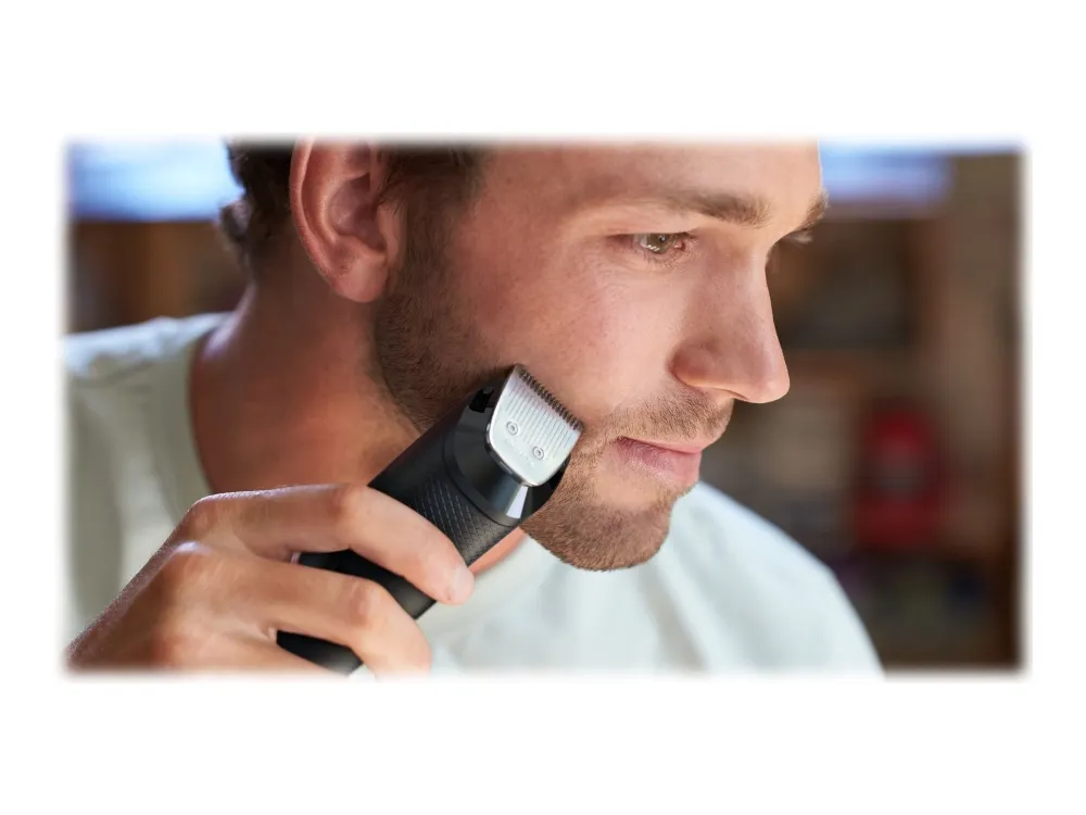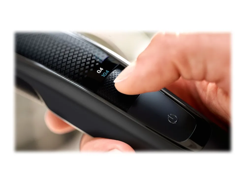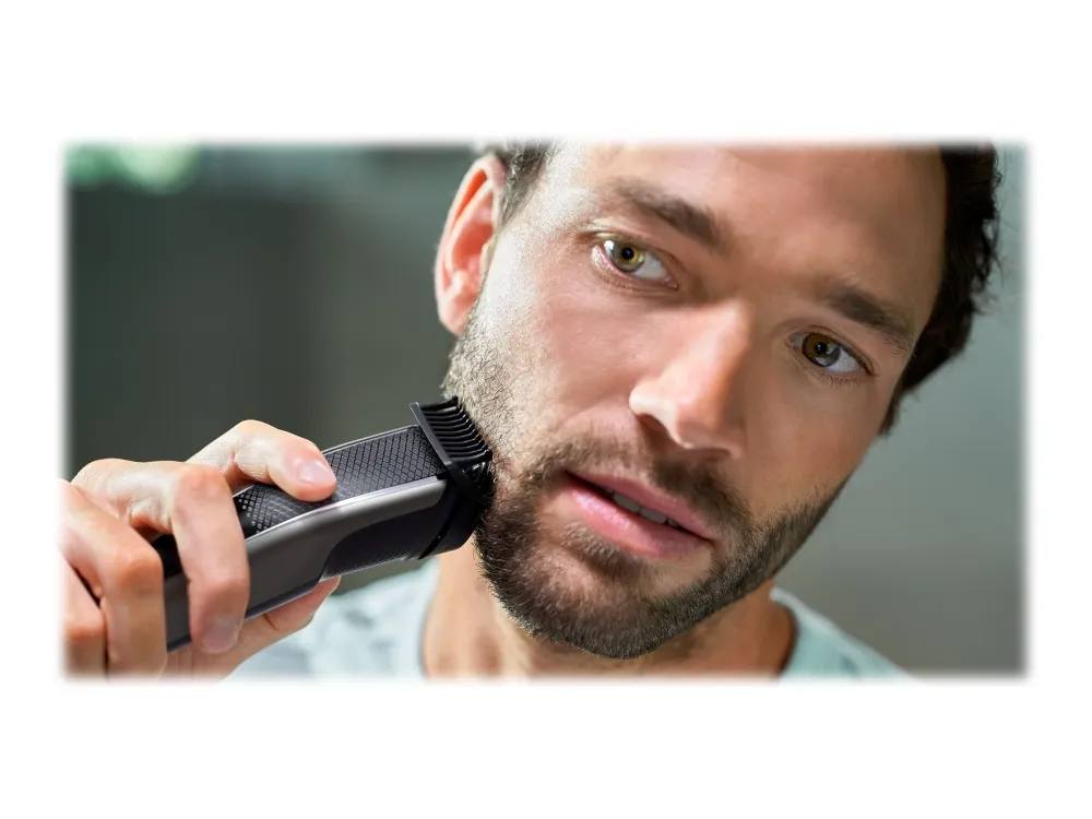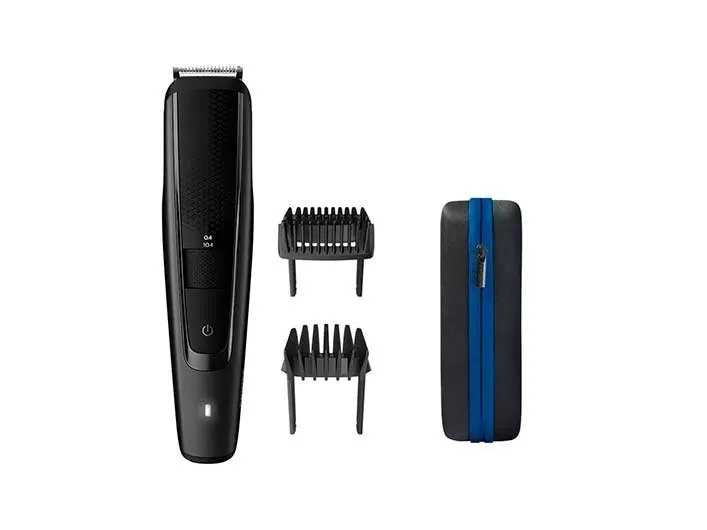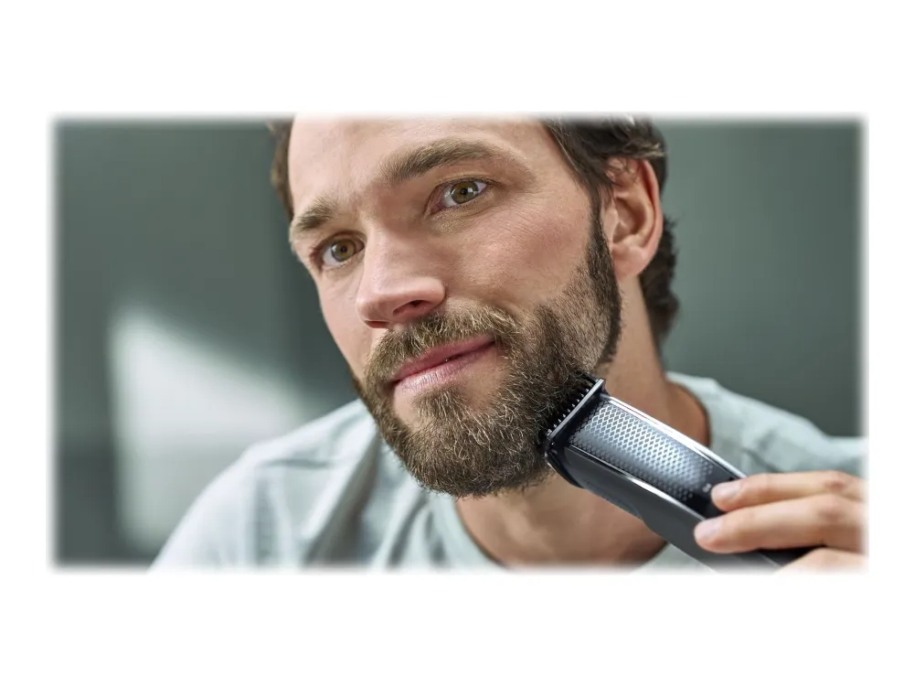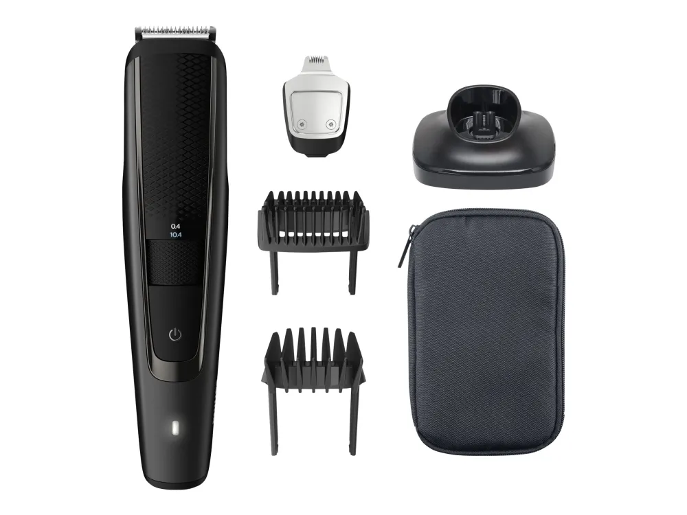 Discover the Philips BeardTrimmer Series 5000, designed for precision and ease, making every grooming session a breeze. This trimmer is a comprehensive solution for maintaining your beard at home or while traveling. With its fully washable design, you can easily clean it under the tap, ensuring a hygienic trim whether you prefer a dry or wet trim. The Philips BeardTrimmer Series 5000 stands out with its Lift & Trim PRO system and self-sharpening stainless-steel blades, providing an even trim in just one go. The trimmer offers a range of 40 length settings from 0.4 to 20 mm, allowing you to achieve the exact look you desire. Its lithium-ion battery is built for efficiency, charging fully in just one hour and delivering 90 minutes of cordless operation. Whether you're at home or traveling, the included travel case and multi-voltage power adapter ensure your grooming routine never skips a beat. Embrace the convenience, precision, and versatility of the Philips BeardTrimmer Series 5000 for a grooming experience that's efficient and reliable.