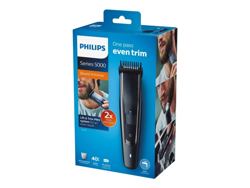 Philips BEARDTRIMMER Series 5000 BT5515/70 Partatrimmeri, Pestävä, Akku, Itse teroittuva terä, Musta