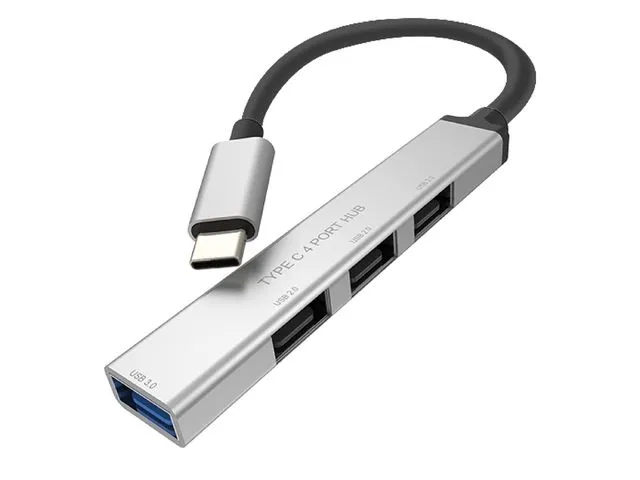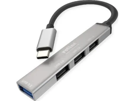 4-Port USB 3.2 Gen 1 Slim Hub made of dark grey aluminium with USB Type C connection cable - for connecting up to four peripheral or storage devices to a tablet (like an Apple iPad Pro), Ultrabook, Notebook/Laptop or PC via USB Type C.ROLINE 14.02.5053-10. Host interface: USB 3.2 Gen 1 (3.1 Gen 1) Type-C, Hub interfaces: USB 3.2 Gen 1 (3.1 Gen 1) Type-A. Data transfer rate: 5000 Mbit/s, Product colour: Aluminium, Cable type: Round cable. Width: 105 mm, Depth: 18 mm, Height: 7 mm. Quantity per pack: 10 pc(s), Package width: 10 mm, Package depth: 100 mm
