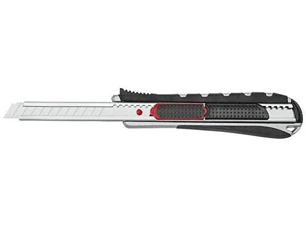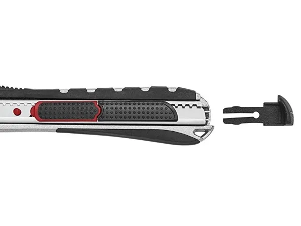 WEDO Cutter 2-in-1, 9 mm with combined blade- retraction and automatic lock. This newly designed cutter combines the function of a classical cutter with standard break-off blade and a safety cutter with automatic blade-retraction. The cutter features a spring-loaded blade that automatically retracts the instant it loses contact with the materiel being cut. Likewise the blade can be pushed forward in the conventional manner using the standard blade lock. The ergonomically shaped metal body and the rubberized grip zone insure a safe handling as well. The break-off device is integrated into the metal body. Delivery on blister card with already inserted break-off blade.Wedo 78 7009. Blade width: 9 mm. Quantity per pack: 1 pc(s)