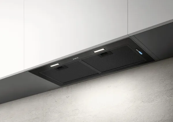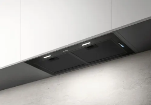 Elica fold-blk-80. Maximum extraction power: 600 m³/h, Type of extraction: Ducted/Recirculating, Fluid dynamic efficiency class: C. Type: Built-in, Product colour: Black, Control type: Buttons. Grease filter type: Charcoal, Number of filters: 2 pc(s). Bulb power: 2.1 W, Number of bulbs: 2 bulb(s), Bulb type: LED. Annual energy consumption: 75 kWh, Energy efficiency scale: A+++ to D, AC input voltage: 240 V