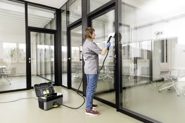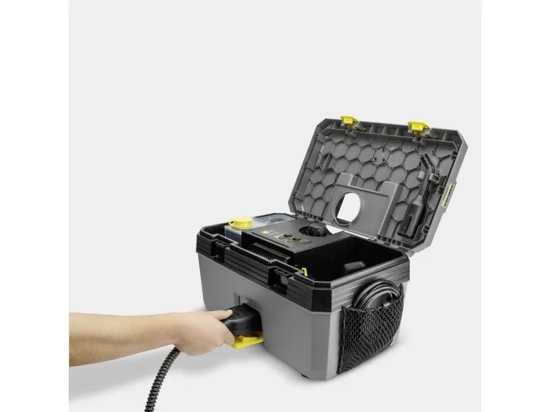 Thanks to the unique all-in-one box design, it is very compact, robust and durable, it is also extensively equipped and very easy to use: The SG 4/2 Classic steam cleaner impresses with excellent cleaning results, a superb price/performance ratio and maximum efficiency. The lightweight machine, weighing only 7.5 kilograms, is the most compact professional steam cleaner in its class, is ready for use in only 3 minutes and with 4 bar steam pressure offers more than enough reserves for deep cleaning and sanitation without the use of chemicals. Counters, dispensing equipment, tiles, hobs, ovens and lots more are meticulously cleaned right into the smallest crevice – regardless of the level of contamination. In particularly stubborn cases the connectable VapoHydro function helps with hot water and effectively removes heavy contamination and greases, the water tank can be removed and filled at any time. Accessories such as steam hose, hand nozzle, point jet nozzle, Power nozzle, round brush, flat brush, steam scraper and microfibre cover are all stored directly in the machine – a floor nozzle is also available as an option.