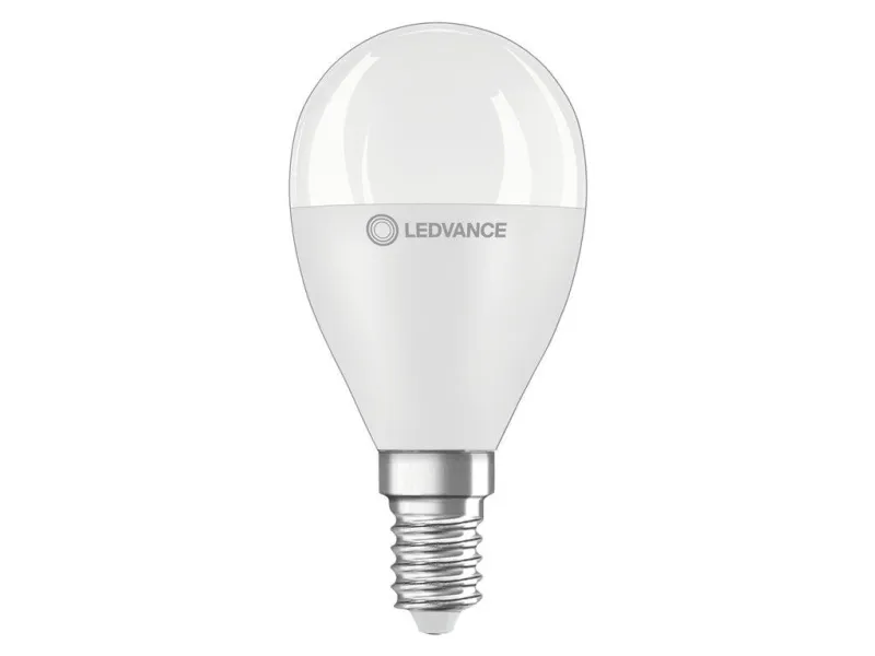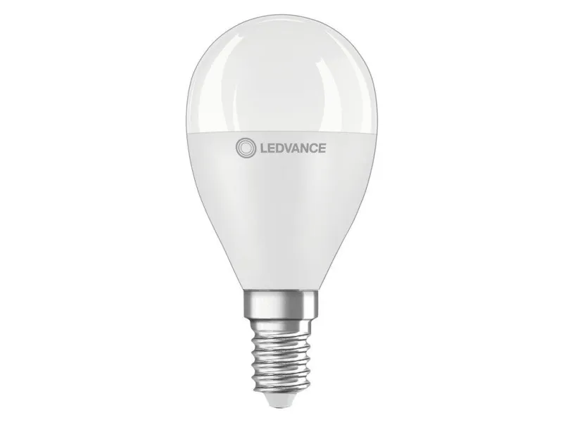 Product type- LED bulbs. Article- 4099854049224. Brand- Ledvance. Lamp type- LED. Length- 89 - 89mm. Width- 47 - 47mm. Height- 47 - 47mm. Voltage- 220 - 240V. Socket- E14. Luminous flux- 806 - 806lm. Lamp shape- Standard. Colour of light- Warm white. Colour temperature- 2700 - 2700°K. Type of glass/cover- Clear. Dimmable- No. Lamp designation- -. Colour rendering index (CRI)- 83. Lamp efficacy- 107 lm/W. Degree of protection (IP)- IP20. Energy Efficiency Class- F. Power consumption, kWh/1000 h- 6. Average nominal lifespan- 10000 h. With reflector- No. Wireless control (Wi-Fi)- No. With remote control- No. Remote control function- No. Number of Items- 1. Energy saving bulb- Yes. Mandatory warranty- 24 mo. Warranty for legal entities- 24 mo.