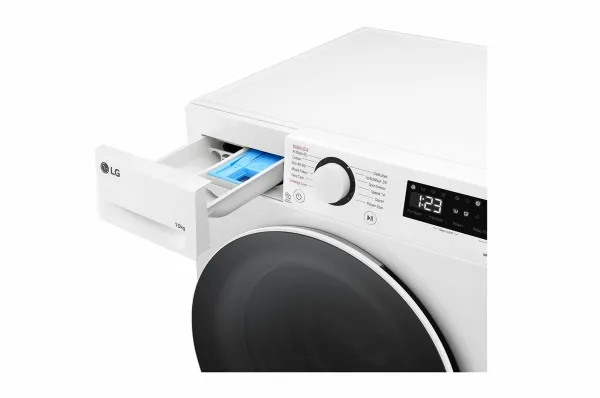 The LG F4WR510S0W washing machine offers a blend of efficiency and innovative technology, making laundry day more convenient. With a loading capacity of 10 kg, this front-loading model is designed for handling large loads while maintaining excellent washing performance. It features an LED display and touch-sensitive controls for easy accessibility and operation. The built-in AI DD technology optimizes each wash cycle by analyzing the fabric type and adjusting the motion accordingly for a thorough clean. Additionally, energy consumption is mindful, operating at just 0.462 kWh per cycle, making it an environmentally friendly choice for households. Safety and convenience are priorities with features such as child security, a tempered-glass door, and a Smart Diagnosis system that helps troubleshoot potential issues. The adjustable feet ensure that the washing machine remains stable on various floor types. With multiple washing programs, including Eco 40-60, TurboWash 39, and delicate modes, users have the flexibility needed for any fabric type. This machine is ideal for those seeking efficiency and innovative washing solutions in their daily routine.