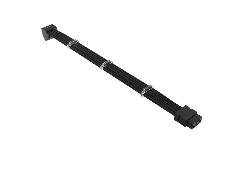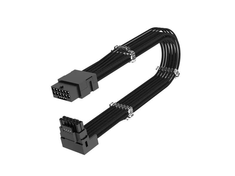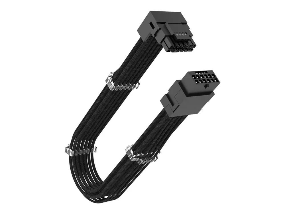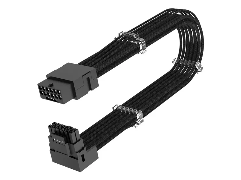 The Akasa G-Nexus P16 power extension cable is designed to enhance the connectivity and efficiency of your power supply setup. This cable supports a maximum load of 600 W, ensuring optimal performance for your PCI Express components. The left connector is equipped with a 90° angled design, facilitating easy access and efficient cable management while the right connector boasts a straight design for straightforward connections. With both connectors being 12+4 pin PCI Express 5.0, this cable provides a reliable connection between your power supplies and devices, contributing to an organized and functional workstation setup.