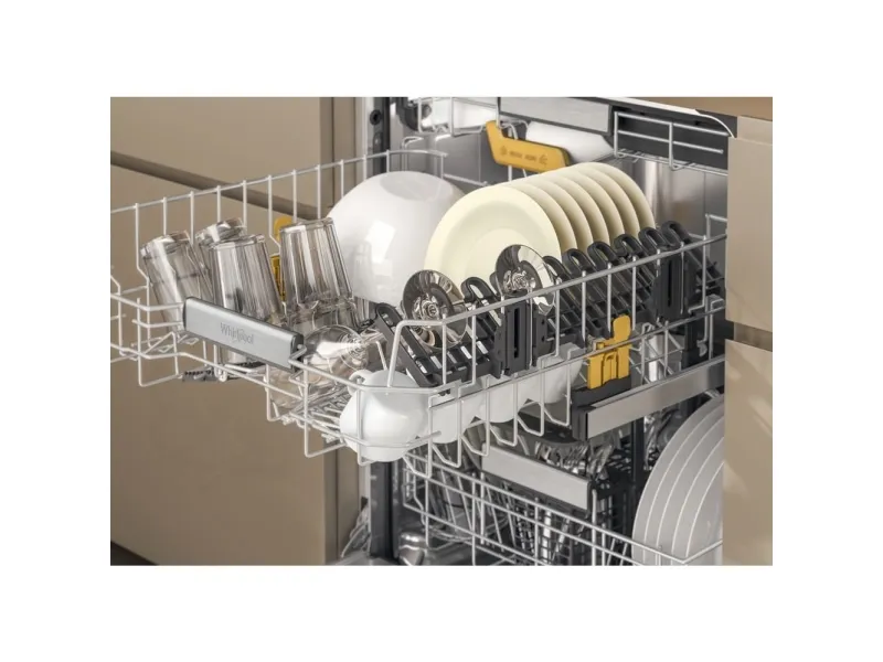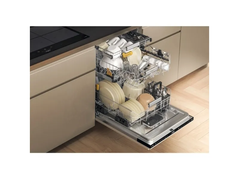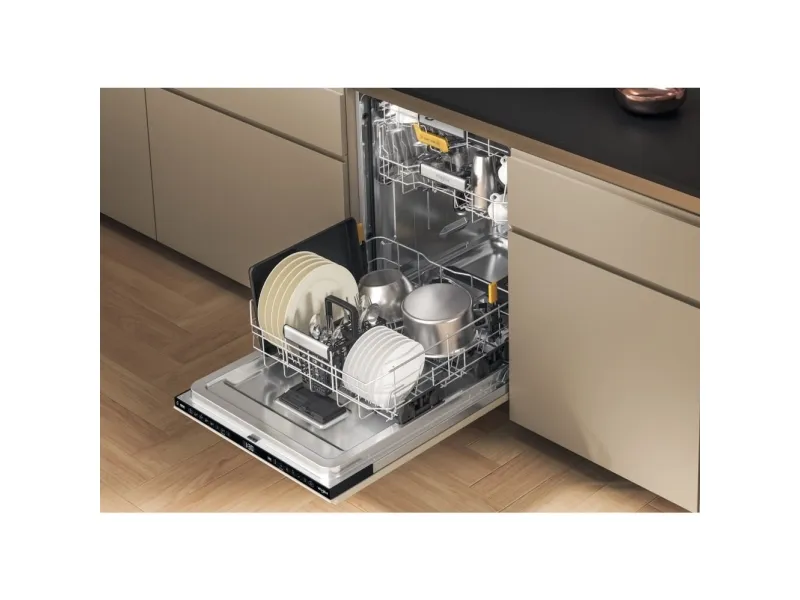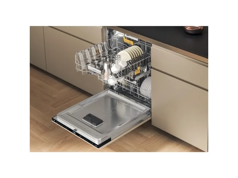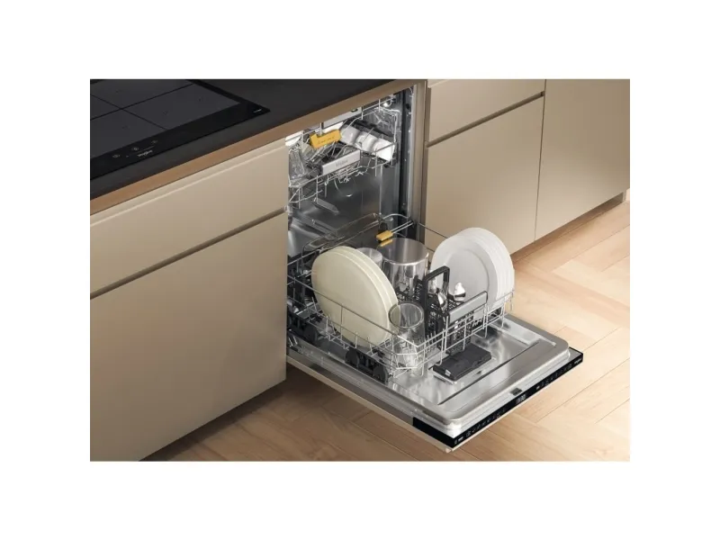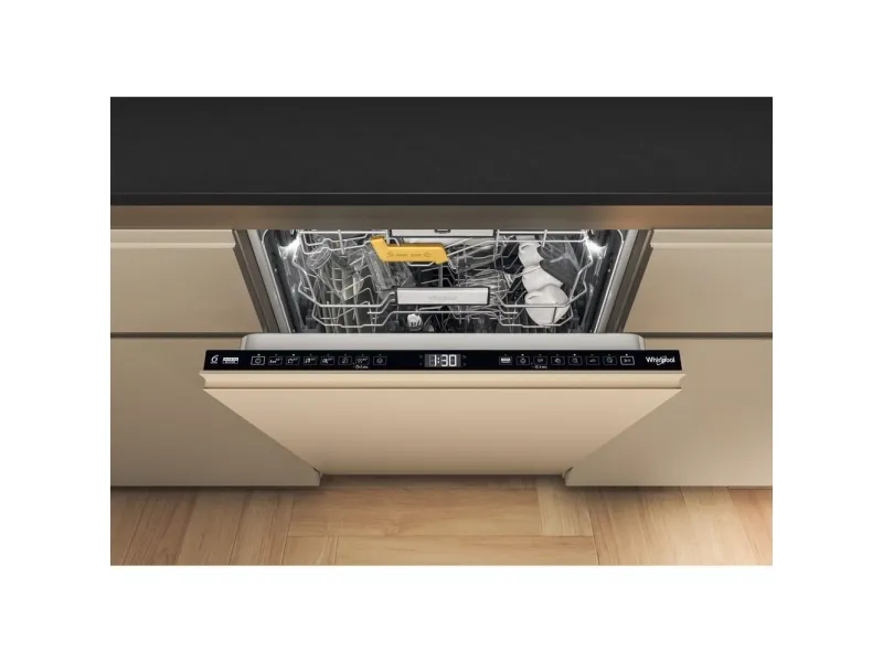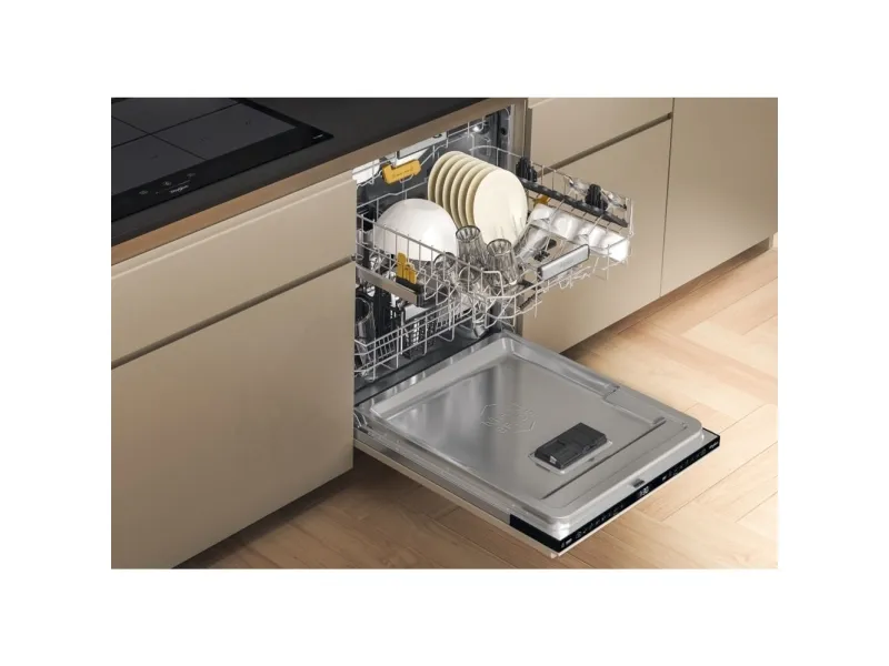 Brand- Whirlpool. Model- W8I HF58 TU. Width- 59.8 cm. Depth- 55.5 cm. Height- 82 cm. Weight- 35.5 kg. Energy Efficiency Class- B. Water consumption per cycle- 9.5 l. Number of sets of dishes- 14. Dishwasher type- Built-in. Washing efficiency class- B. Drying efficiency class- A. Noise level- 38 dB. Control- Electronic. Water spill protection- Yes. Screen- Yes. Tool drawer- Yes. Mandatory warranty- 24 mo. Postponement of the start of the program- Yes.