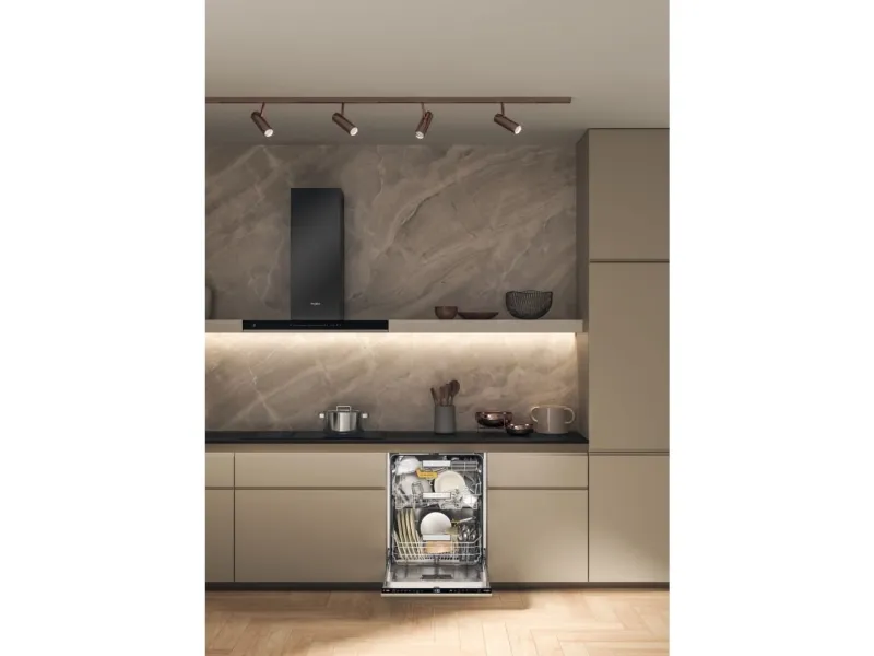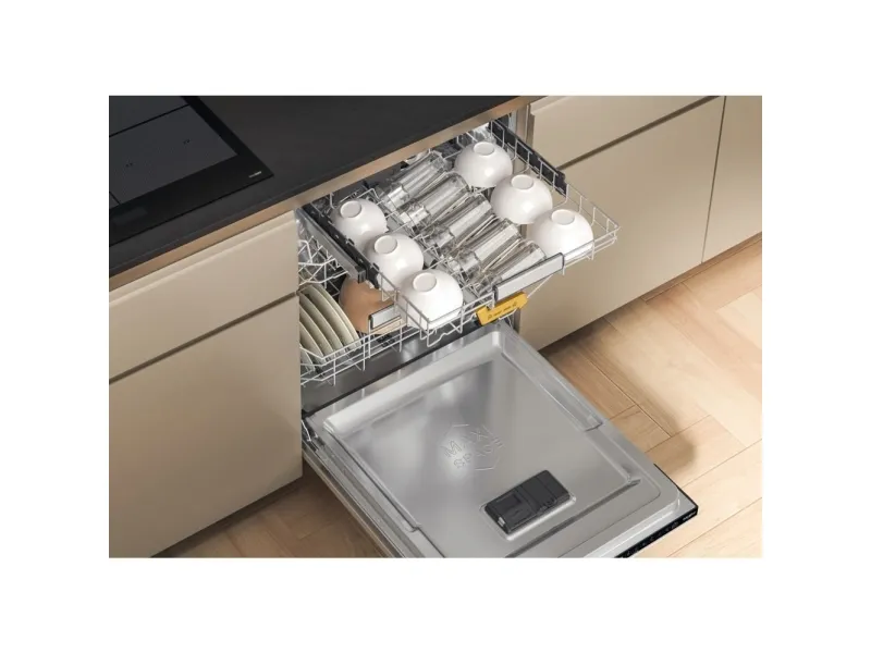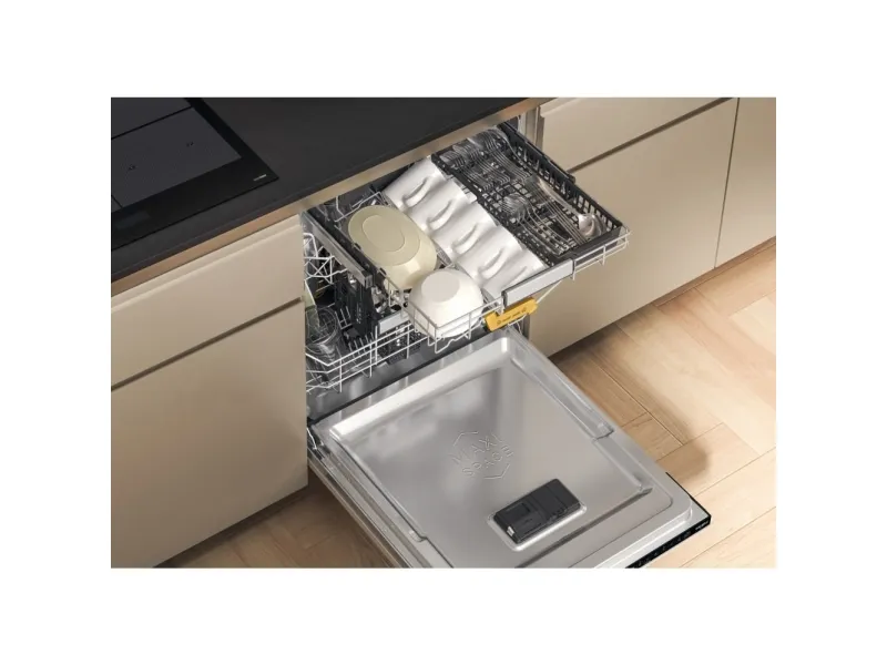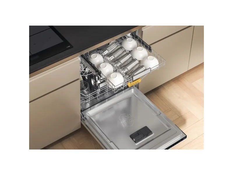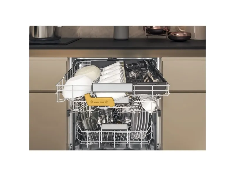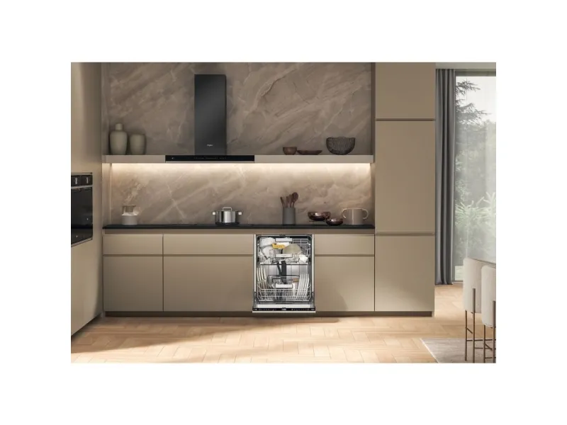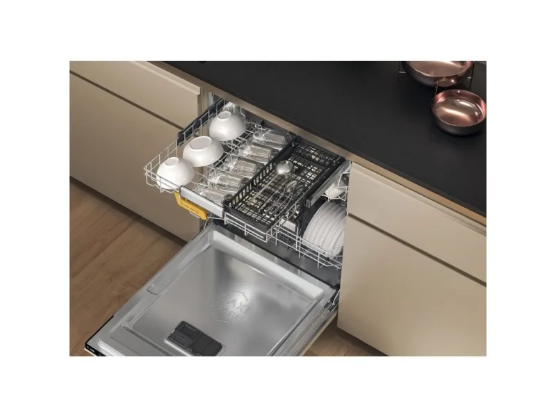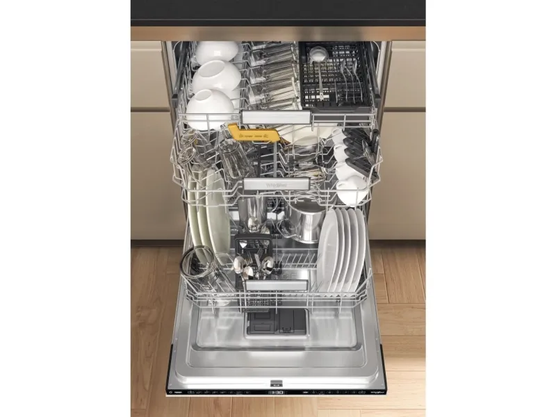 Brand- Whirlpool. Model- W8I HF58 TU. Width- 59.8 cm. Depth- 55.5 cm. Height- 82 cm. Weight- 35.5 kg. Energy Efficiency Class- B. Water consumption per cycle- 9.5 l. Number of sets of dishes- 14. Dishwasher type- Built-in. Washing efficiency class- B. Drying efficiency class- A. Noise level- 38 dB. Control- Electronic. Water spill protection- Yes. Screen- Yes. Tool drawer- Yes. Mandatory warranty- 24 mo. Postponement of the start of the program- Yes.