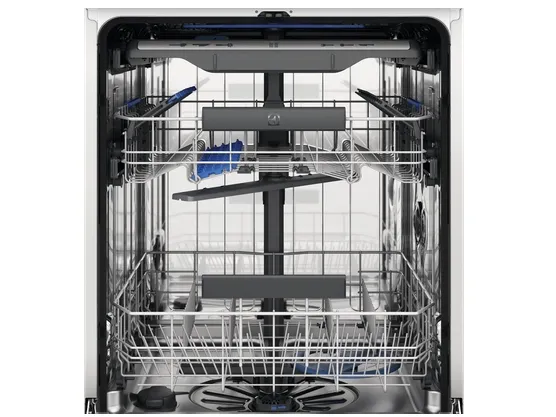 Electrolux EEG68520W. Appliance placement: Fully built-in, Product size: Full size (60 cm), Cord length: 1.6 m. Number of place settings: 14 place settings, Noise emission class: B, Noise level: 42 dB. Energy efficiency class: B, Water consumption per cycle: 9.9 L, Energy consumption per 100 cycles: 64 kWh. Width: 596 mm, Depth: 560 mm, Height: 818 mm. Package width: 635 mm, Package depth: 680 mm, Package height: 870 mm