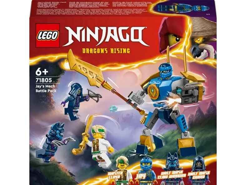 Jayn robottitaistelupakkaus ‑seikkailulelu (71805) innostaa yli 6-vuotiaat pojat ja tytöt leikkimään NINJAGO® Lohikäärmeiden nousu ‑TV-sarjan 2. kaudelta tuttuja taisteluita. Lapsille sopiva ninja-aiheinen rakennuslelu sisältää upean robotin, jonka kädet, jalat ja ylävartalon voi taivuttaa eri asentoihin ja jolla on aseinaan iso kultainen miekka ja nuppeja tulittavat 2 asetta. Ninjalelu sisältää 4 NINJAGO-minihahmoa ja lukuisia tarvikkeita. Jaylla on varusteena kultainen miekka ja Mestari Lloydin minihahmolla 2 kultaista katana-miekkaa. Raatelukyntisellä, susinaamiota kantavalla soturilla on kummassakin kädessä pitkät kynnet, ja susinaamioisella vartijalla on aseenaan varsijousi. LEGO® NINJAGO sarjan rakennussetit sisältävät lohikäärmeitä, ajoneuvoja ja temppeleitä, joiden parissa lapset voivat uppoutua roolileikkeihin ja seikkailuihin ninjasankareidensa kanssa. Kaikki mielikuvitusleikkeihin innostavat lelut voi rakentaa LEGO Builder sovelluksen opastuksella. Sovellus opastaa sinua ja lastasi helpossa ja intuitiivisessa rakennusseikkailussa. Zoomaa ja kierrä malleja 3D-näkymässä, tallenna settejä ja seuraa edistymistä.