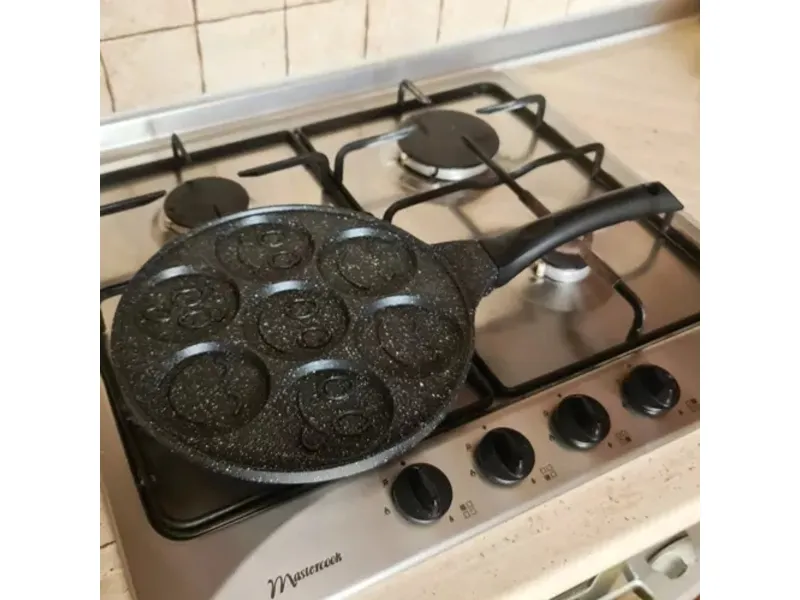 7 EMOTES TIL 7 PAKKER / ÆG - bruges til at lave 7 spejlæg eller 7 pandekager på én gang. Tillader hurtig stegning via kosten.