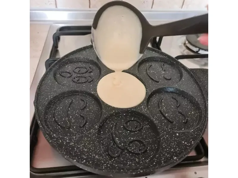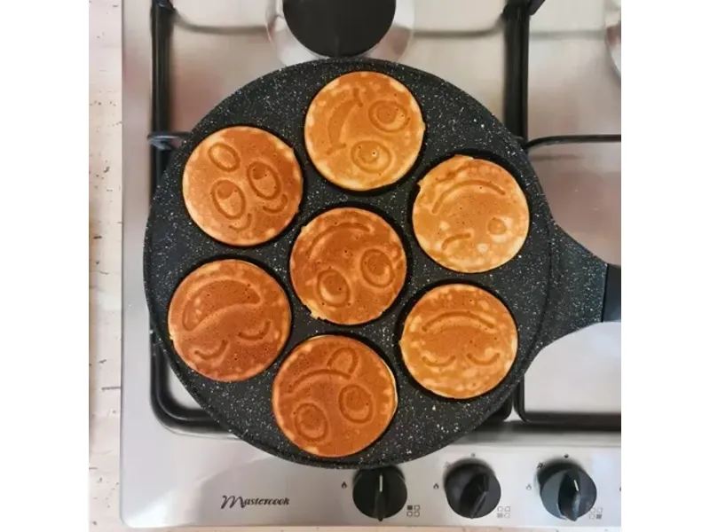 Er dine børn også kræsne? Denne pande vil tilskynde selv den mest stædige spiser til at spise. En smilende omelet eller kage vil bringe en masse glæde til måltidet og også opmuntre dig til at spise. At pynte + spise er børns største glæde. At påføre frugtsmil samt at male øjnene med marmelade eller chokoladecreme vil være en stor attraktion under måltidet.