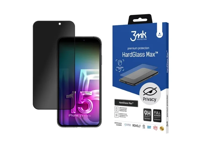 3MK HardGlass Max Privacy. Compatibility: iPhone 15 Pro. Quantity per pack: 1 pc(s)