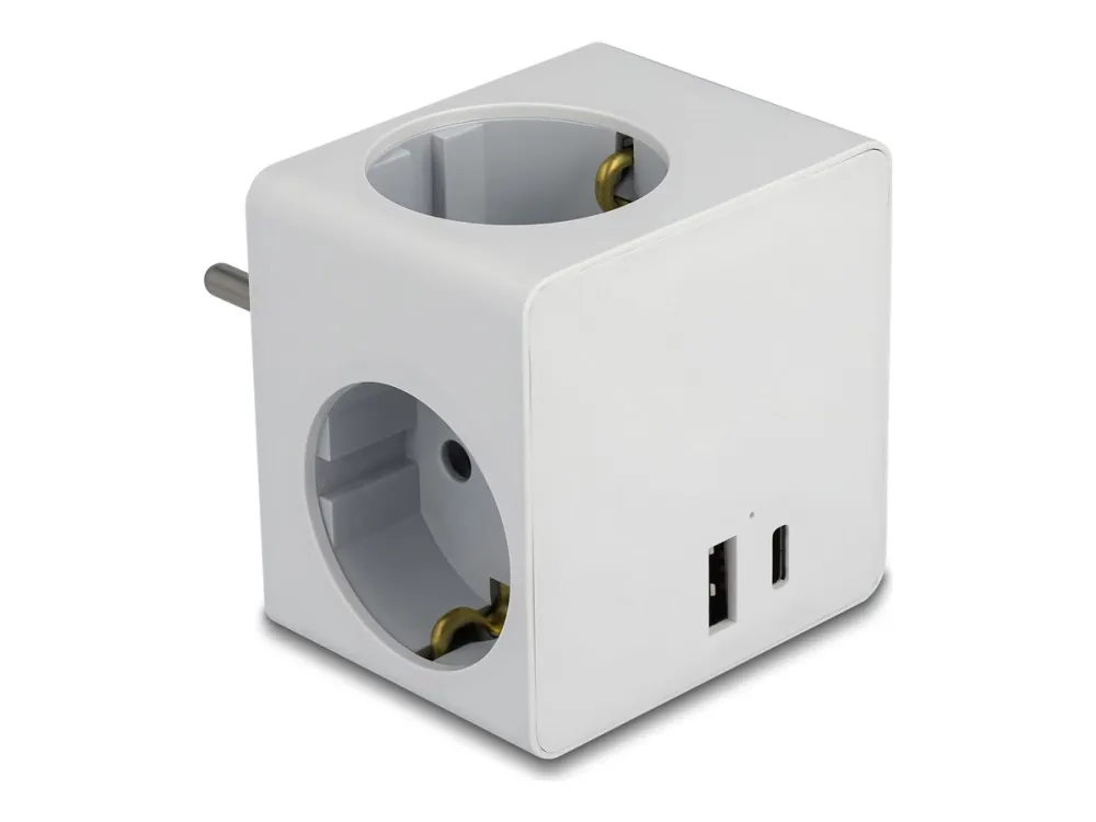 Discover a solution for your power distribution needs with the Delock multi socket cube. This 3-way extension socket is designed to cater to a modern lifestyle, offering a combination of USB-A and USB-C ports alongside traditional power outlets. With an emphasis on safety, it comes equipped with childproof locks and protection features against overcurrent, overheat, overvoltage, and short-circuits, ensuring your devices and loved ones are always protected. The cube's compact design does not compromise on power, providing an impressive 3680 W output with support for Power Delivery (PD) 3.0, making it perfect for efficient charging of all your devices. Whether at home or in the office, this socket splitter's LED status indicators and retail box package make it a practical, reliable, and stylish addition to any space.