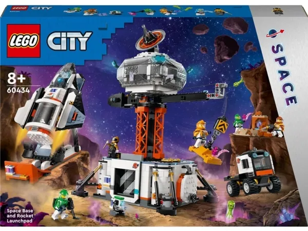 Yli 8-vuotiaille sopiva avaruustutkimukseen innostava LEGO® Avaruusasema ja raketin laukaisualusta (60434) lelusetti lukuisine yksityiskohtineen innostaa galaktisiin seikkailuihin. Päärakennelman yläpuolella on komentokeskus ja 360 astetta kääntyvä avaruustorninosturi. Avattavan päärakennelman sisältä löytyy varustekaruselli, tiedelabra ja virkistysalue. Setti sisältää myös avaruusaluksen, laukaisualustan, rakennustyömaa-ajoneuvon ja planeettarakennelman energiakristalleineen ja kasveineen. Mukana on avaruusmiehistön 6 minihahmoa sekä 1 robotin ja 2 avaruusolennon hahmot mielikuvitus‑ ja roolileikkeihin.
