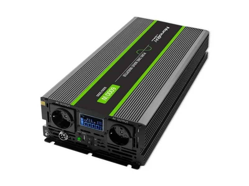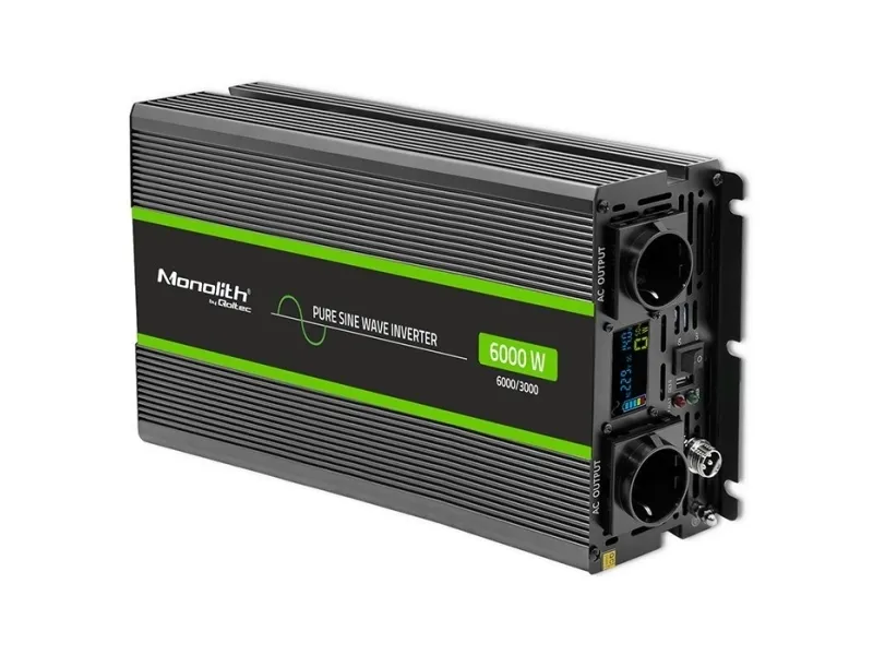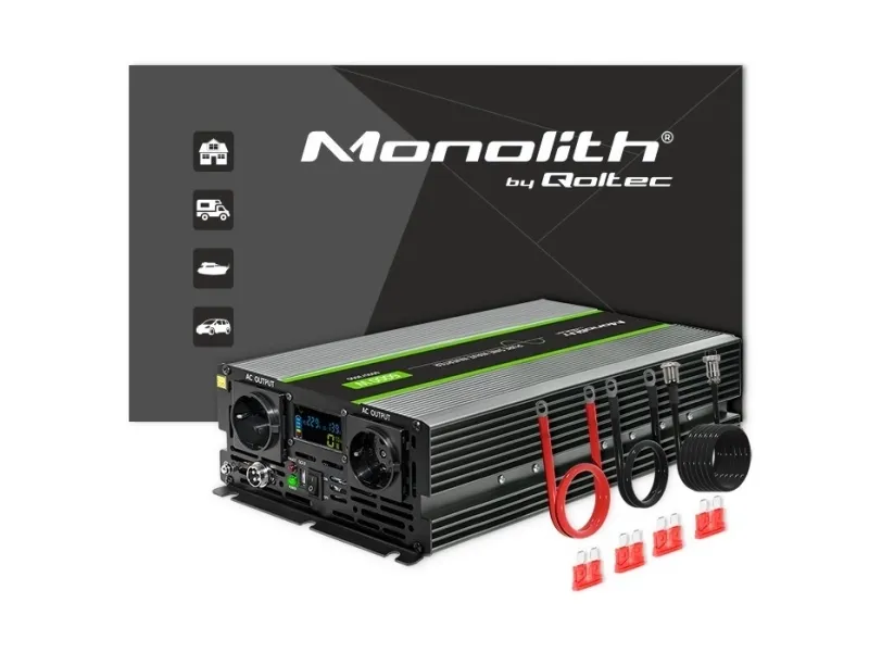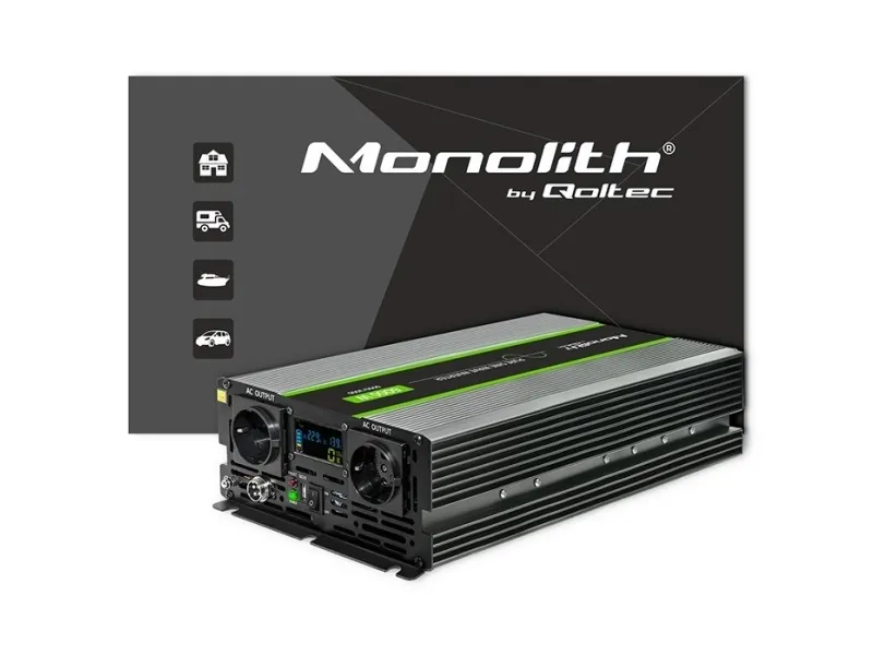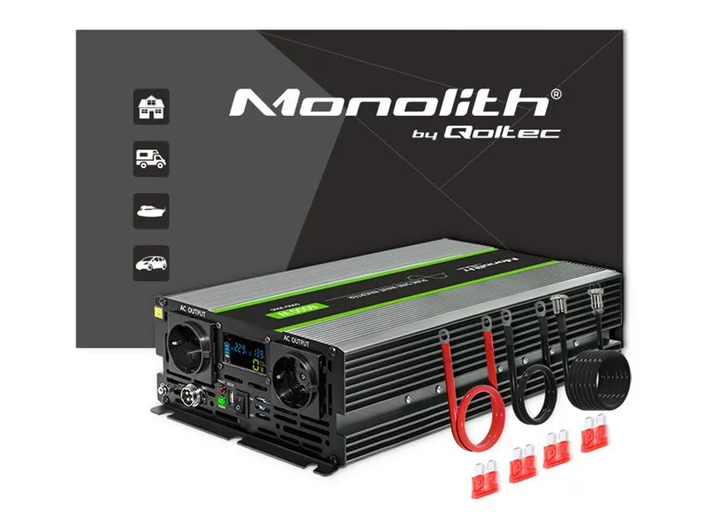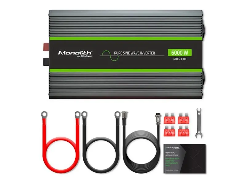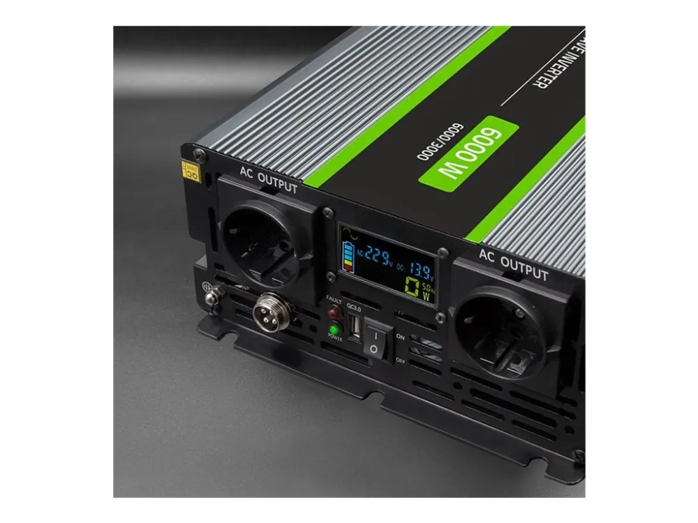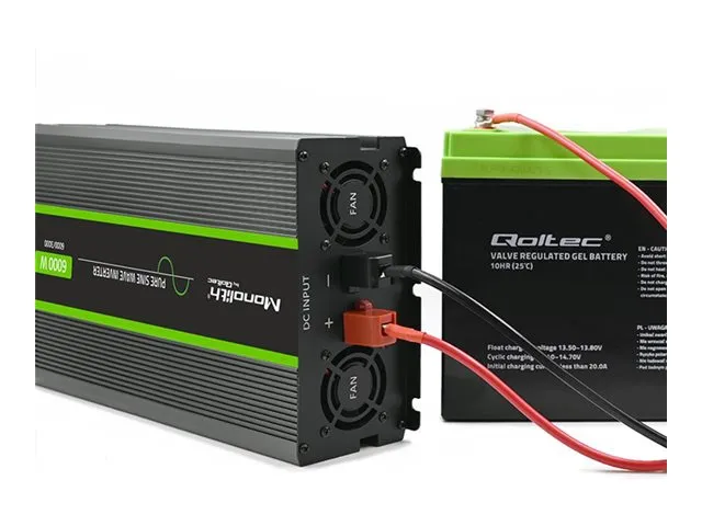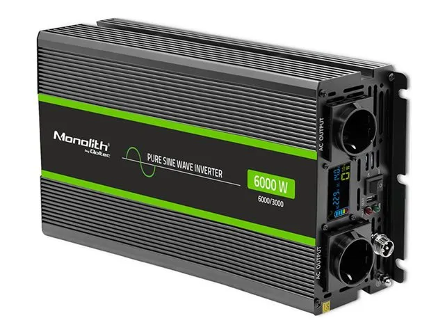 Qoltec Monolith -jännitemuunnin | 3000W | 6000W | 24V - 230V | puhdas siniaalto | LCD-näyttö