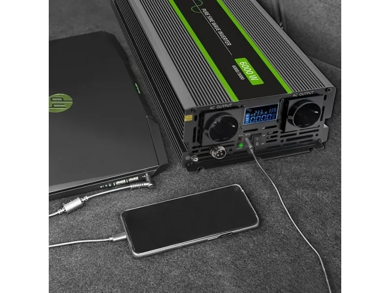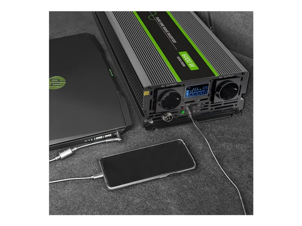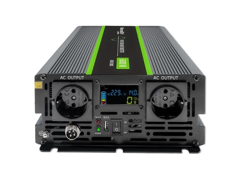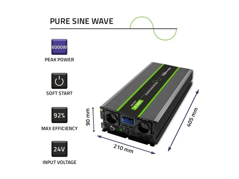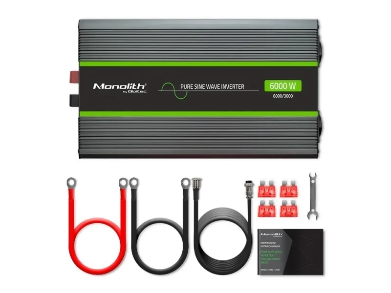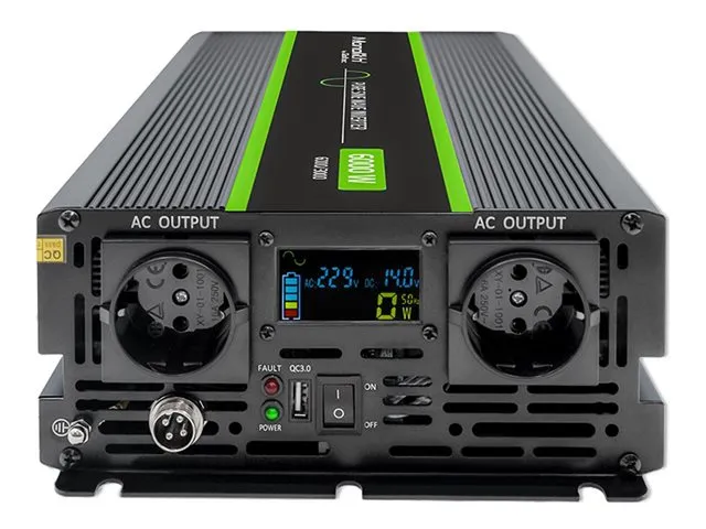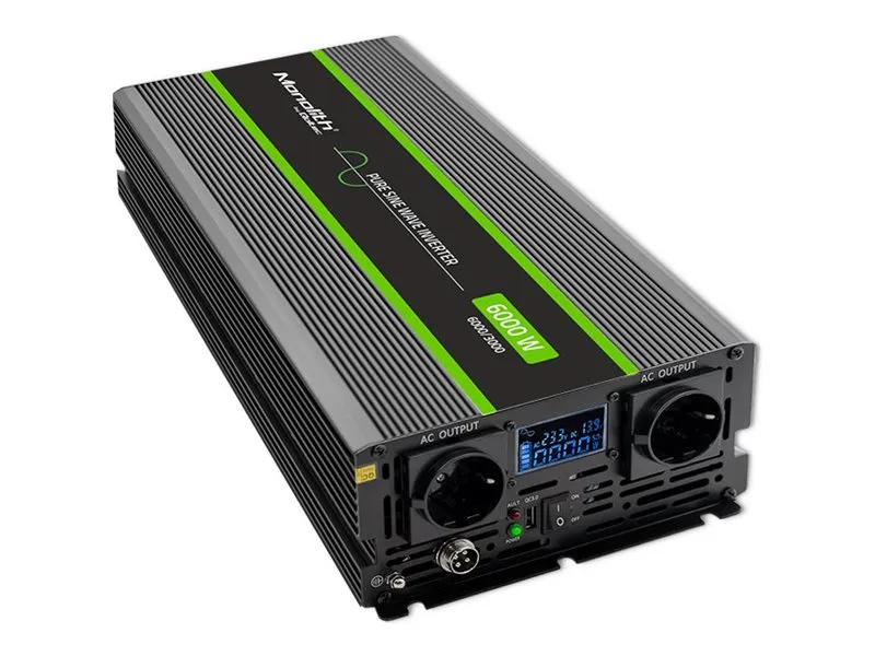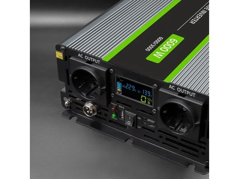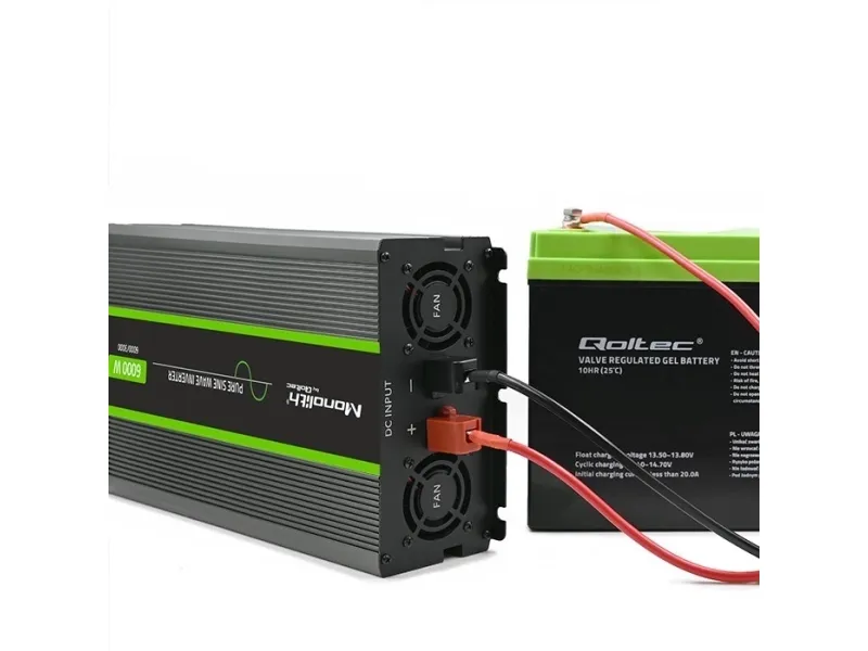 Qoltec Monolith -jännitemuunnin | 3000W | 6000W | 24V - 230V | puhdas siniaalto | LCD-näyttö
