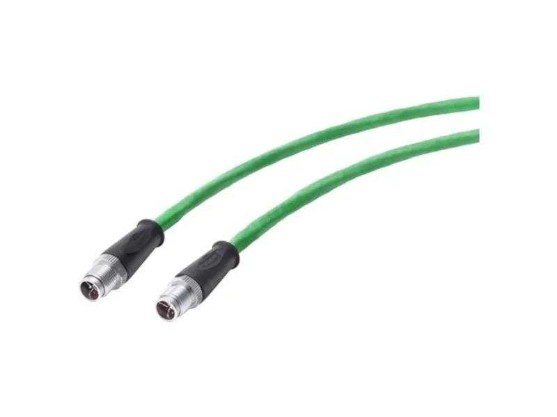 IE TP Cord M12-180/M12-180, pre-assembled IE Flexible Cable, with 2 M12 connectors (X-coded), length 0.3 m. IE TP Cord M12-180/M12-180, pre-assembled IE Flexible Cable, with 2 M12 connectors (X-coded), length 0.3 m. Simple connection of terminal devices with an M12 interface and with IP65/67 degree of protection to the interference-proof Industrial Ethernet FastConnect cabling system (10/100/1000/10000 Mbps). Silicone-free, therefore suitable for use in the automotive industry (for example on paint lines).Quick and error-free commissioning thanks to pre-assembled, factory-tested patch cables. Simple cable laying due to small cable diameter.