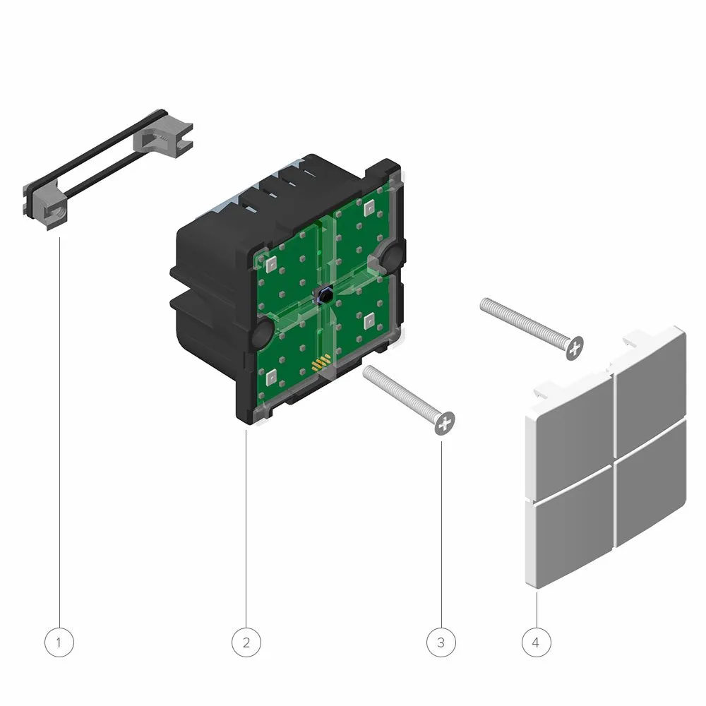 With the innovative Matrix ZRB5120, light has been added to the traditional wall switch and combined with wireless communication. ZRB5120 features two relay switches, backlighting, and wireless Z-Wave communication with 4 scene controllers. Replace your old wall switch or control lamps with high load using an intelligent control switch. The built-in relays can control two local loads, such as lamp sockets, and thus replace a standard two-pole switch. Use ZRB5120 when you want to control two different light sources separately, or where you cannot use a dimmer. It can turn on and off two separate devices, with a maximum total load of 5A or 1000W for both relays. Designed to fit into all FUGA® compatible frames, boxes, and bases. Functions as a Z-Wave network repeater to strengthen the network. The four buttons are designed with quality and tactile feedback in mind. Up to 16 different options with single press, double press, triple press, long press, and release on each of the four buttons. Elegant and easy-to-clean front. No visible fingerprints. The buttons can light up in any color and be used to indicate the status of a lamp, for night lights, visual alarms, and much more. Ideal for converting an IHC installation as it can operate on a voltage between 48-55V DC, allowing you to use the existing IHC Link10 cables.