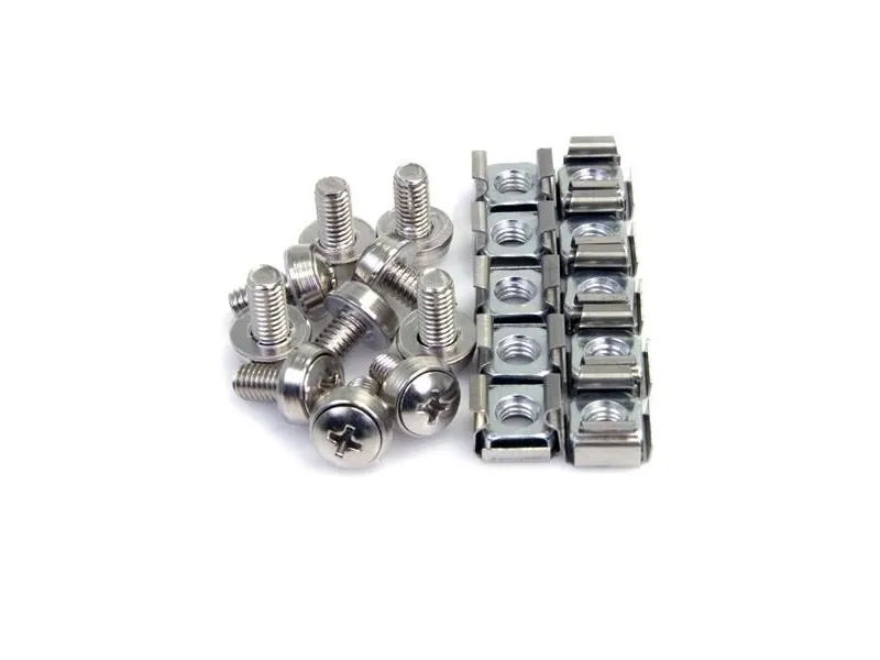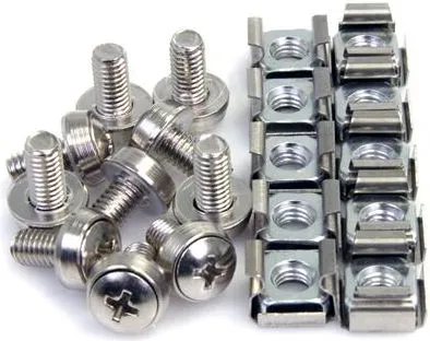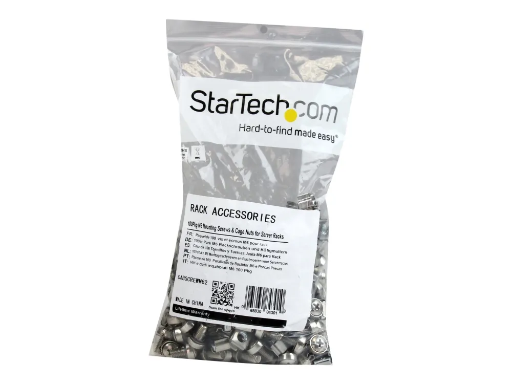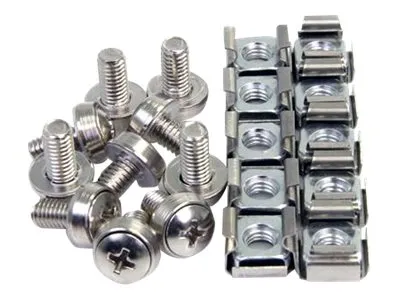 The StarTech.com Advantage - Quick shipping direct or from all major distributors and resellersStarTech.com 100 Pkg M6 Mounting Screws and Cage Nuts for Server Rack Cabinet. Type: Screw, Material: Metal, Suitable for materials: Sheet metal. Length: 12 mm, Weight: 1 kg, Package width: 145 mm. Quantity per pack: 100 pc(s)