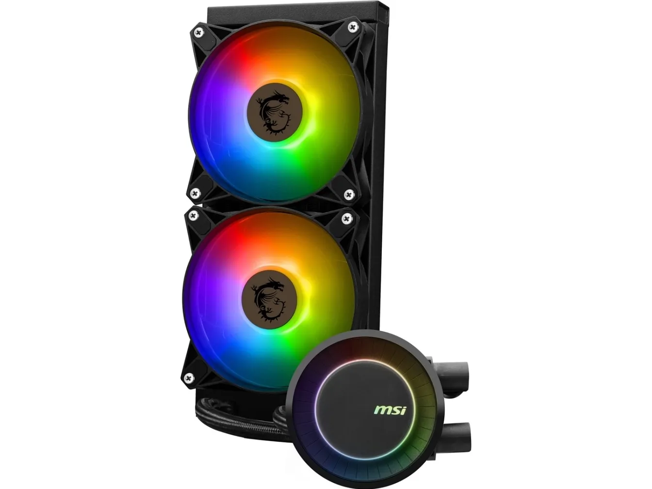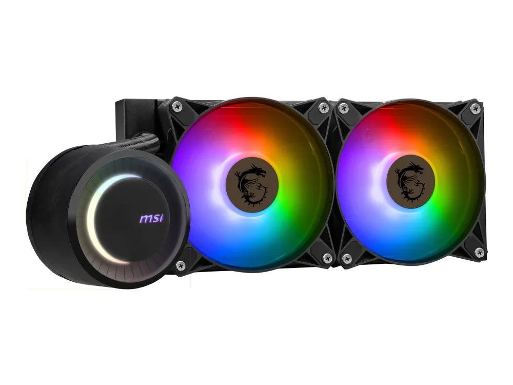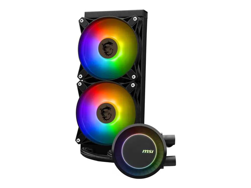 The MSI MAG CORELIQUID E240 is a high-performance processor liquid cooling system designed to keep your gaming rig or workstation running smoothly and efficiently. Featuring a 240 mm aluminum radiator paired with ARGB fans, it not only offers excellent cooling capabilities but also adds a touch of customizable aesthetics to your system. Its wide compatibility with both Intel and AMD sockets makes it a versatile choice for various builds. The inclusion of a PWM 1 to 2 cable allows for easy control over fan speeds, ensuring optimal balance between cooling and noise. With a durable design, highlighted by fluid dynamic bearing fans and a high MTBF, the MSI MAG CORELIQUID E240 is built to last, making it an ideal cooling solution for enthusiasts seeking performance and reliability.