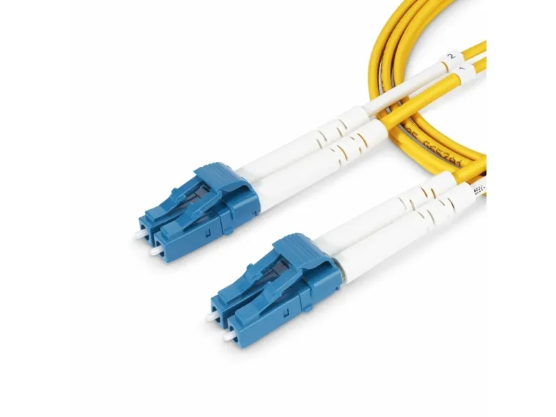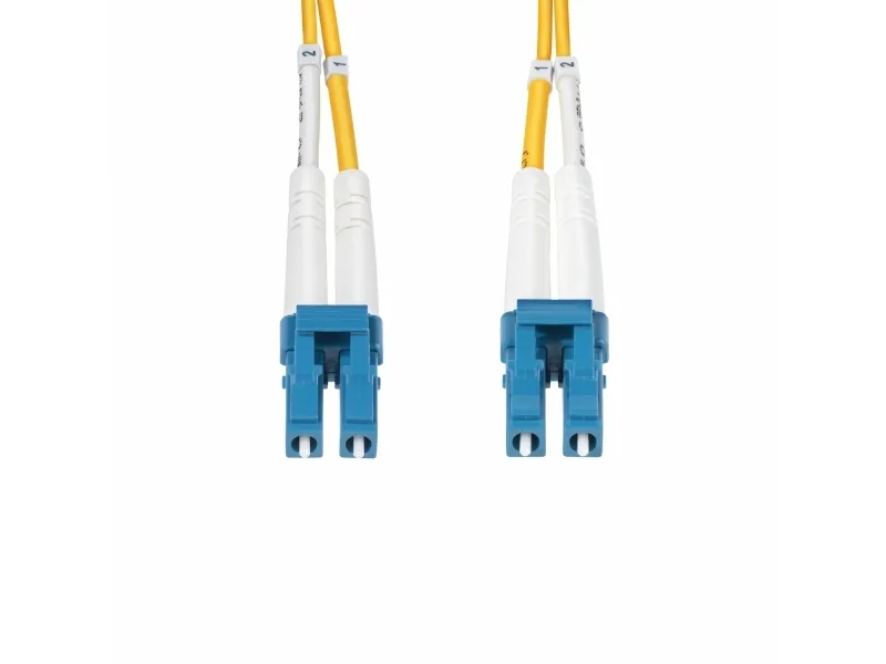 The StarTech.com 5m (16.4ft) LC to LC (UPC) OS2 Single Mode Duplex Fiber Optic Cable is designed to meet the needs of high-speed, high-performance network environments. With its bend insensitive technology and a minimal bending radius of 10 mm, this cable offers flexibility in installation without compromising signal integrity. It supports data transmission speeds up to 10 Gbps across a wavelength range of 1260-1625 nm, making it suitable for a wide range of applications including Internet backbones, data centers, and server farms.