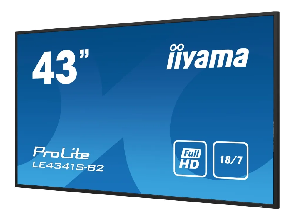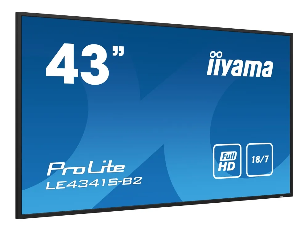 Set in a slim bezel, the iiyama LE4341S is a professional digital signage display offering 18/7 operating time in landscape orientation. This Full HD and fanless IPS display guarantees great viewing from all angles, high brightness and exceptional colour clarity. With the built-in media player you can play your favourite music and show your most beautiful videos, photos and images directly on screen.iiyama PROLITE LE4341S-B2. Product design: Digital signage flat panel. Display diagonal: 108 cm (42.5"), Display technology: LCD, Display resolution: 1920 x 1080 pixels, Display brightness: 350 cd/m², HD type: Full HD. Operating hours (hours/days): 18/7. Product colour: Black