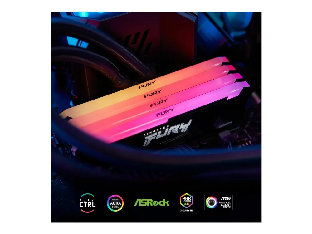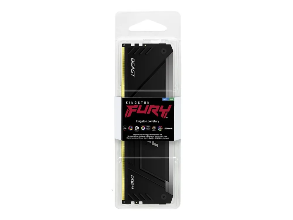 Kingston FURY Beast RGB tarjoaa lisää suorituskykyä ja tyyliä suurilla nopeuksilla, aggressiivisella muotoilulla ja RGB-valaistuksella, joka kulkee moduulin pituussuunnassa tasaisia ja upeita tehosteita varten. Siinä on Plug-and-Play-automaattinen ylikellotus suurilla nopeuksilla, ja se on sekä Intel XMP -valmis että valmis AMD Ryzenille. FURY Beast RGB pysyy viileänä tyylikkään, matalaprofiilisen lämmönjakajan ansiosta.