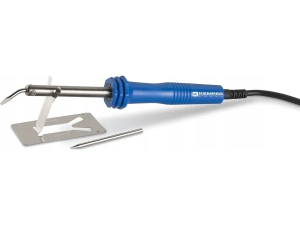 Tinning soldering iron. Equipped with 2 points, one bent and one straight, and supporting stand. Supply 220 Volt. Power 80 Watt.Kemper Group 170090. AC input voltage: 220 V, Power: 80 W