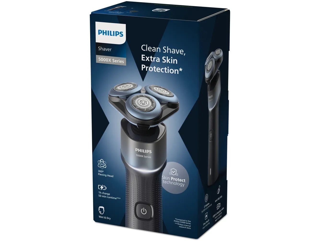 Close shave. Extra skin protection* With Skin Protect technology Minimise skin irritation to look and feel your best every day. Philips 5000X Series with Skin Protect technology is made to give you a close shave with extra skin protection.Philips Shaver 5000X series X5006/00 Wet and dry electric shaver. Shaver system: Rotation shaver, Product colour: Black, Blue. Power source: Battery, Battery technology: Lithium-Ion (Li-Ion), Operating time: 50 min