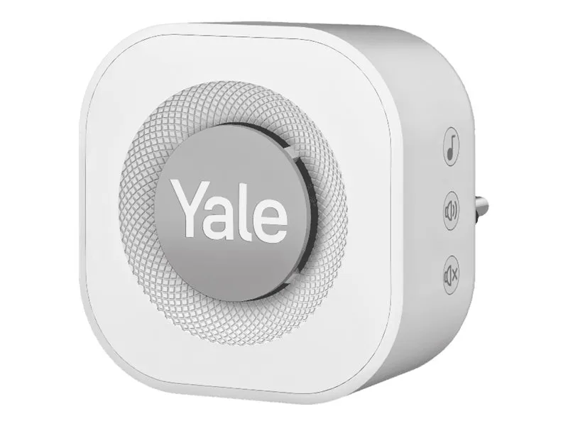 Customisable audio and volume Choose from 7 distinct Yale sounds to match your personal style - and adjust the volume to suit your surroundings. Mute the chime with a single button press when you want peace and quiet.Yale Doorbell Chime. Product colour: Grey, White. Frequency: 433 MHz. Power source type: AC, Input voltage: 100 - 240 V, AC input frequency: 50 - 60 Hz. Country of origin: China. Width: 64 mm, Depth: 37 mm, Height: 64 mm