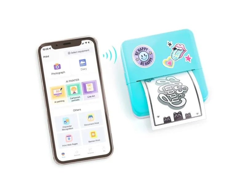 In the app you can take, edit and transform picutres, create pictures with the AI generator and print from the internet directly. You can also decorate your prints with the included markers and stickers.