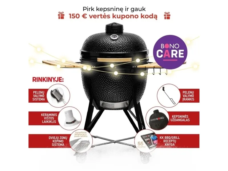 Brand- Kamado Bono. Model- TQ0025. Article- -. Length- 64 cm. Width- 64 cm. Height- 58 cm. Weight- 128 kg. Colour- Black. Material- Ceramics. Number of castors- 4. With thermometer- Yes. Included- Cleaning brush, Grill grate, Grill. Mandatory warranty- 24 mo. Warranty for legal entities- 12 mo.