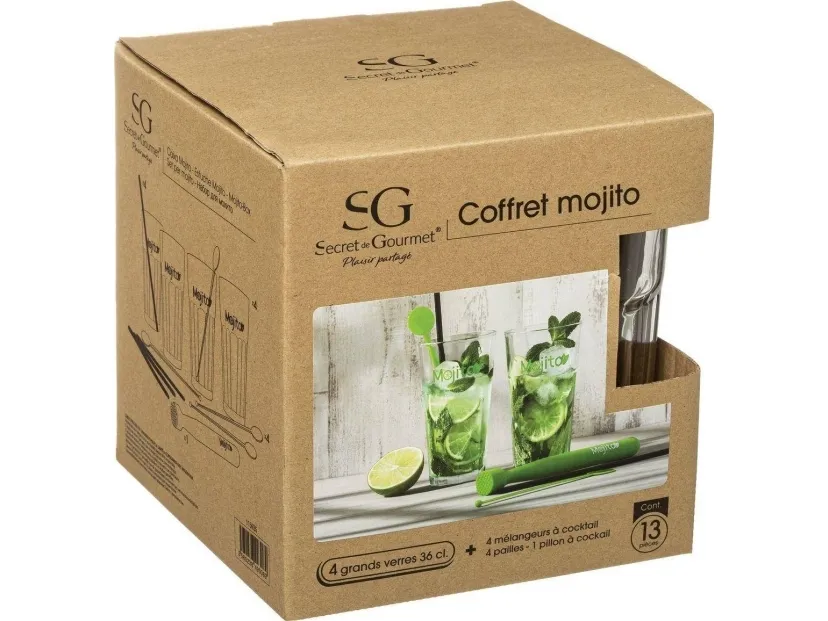 Secret De Gourmet Mojito setti 13 kpl cocktaillasit 330 ml Muddler sekoitin olki