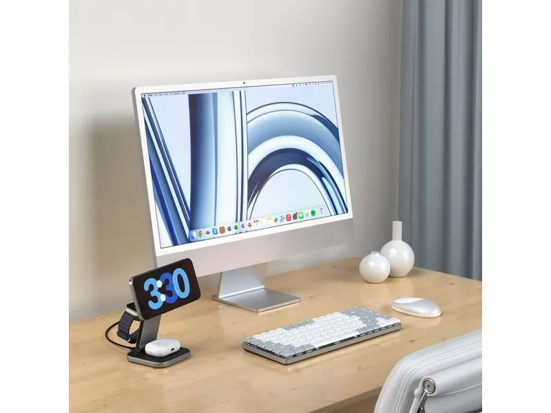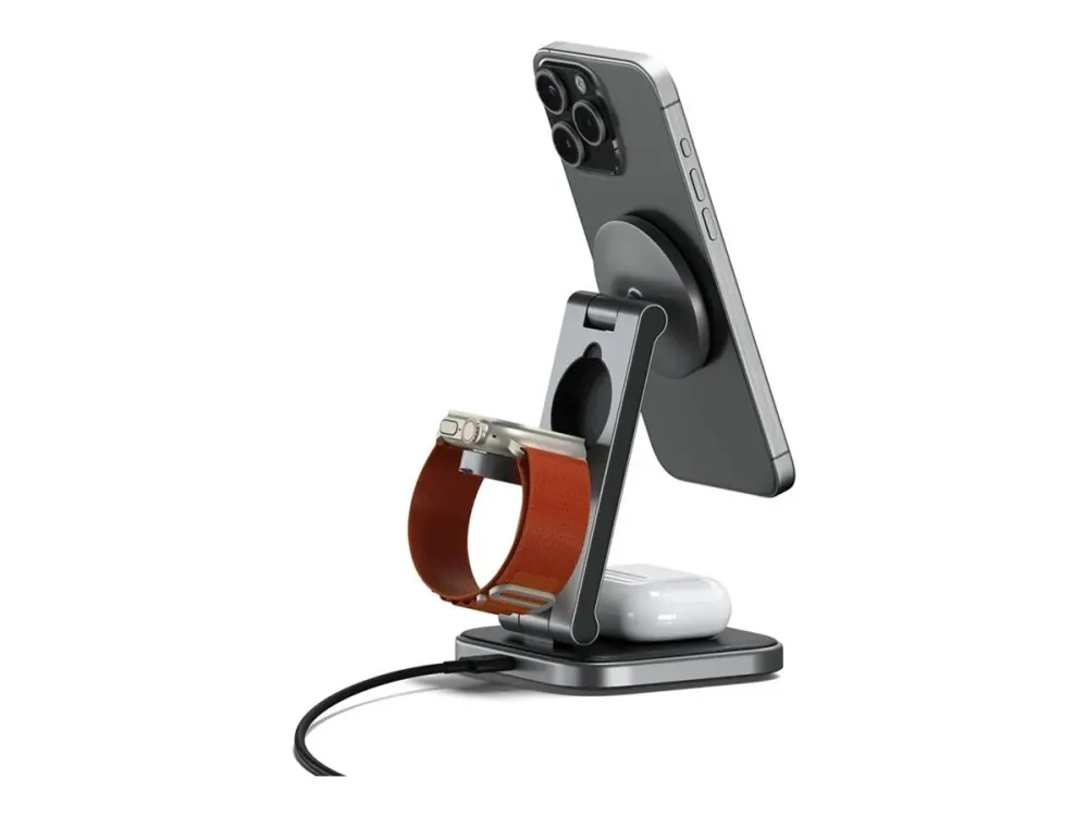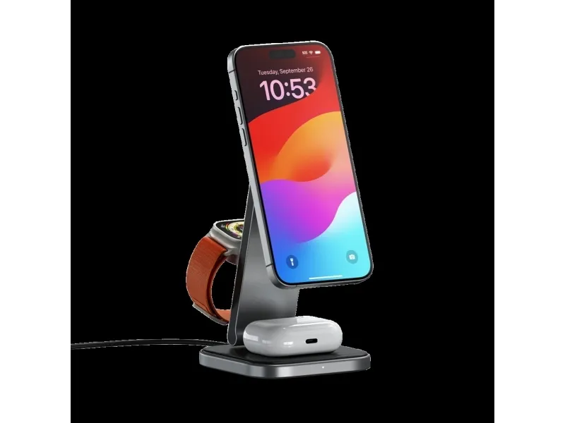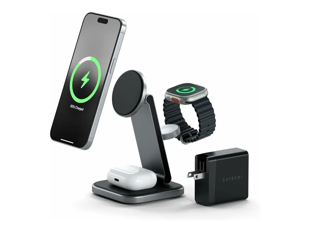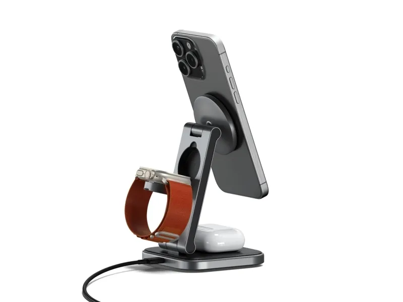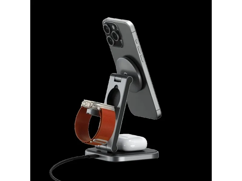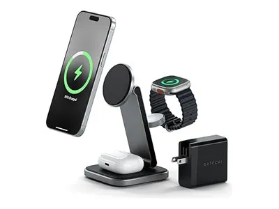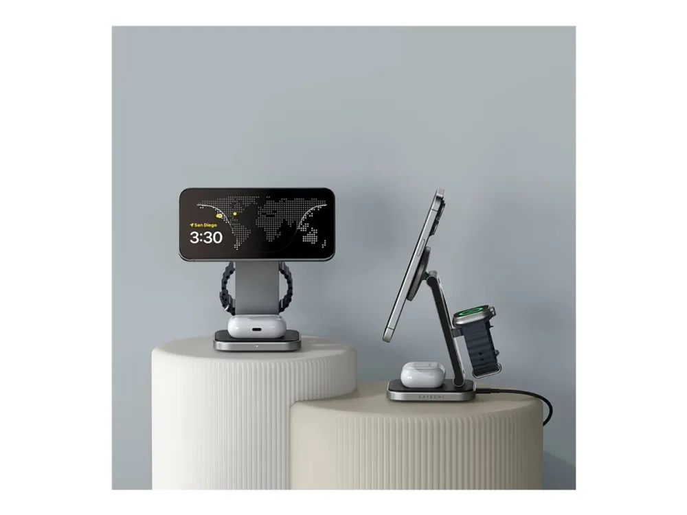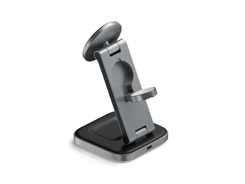 Tutustu langattoman latauksen mukavuuteen Satechin langattoman lataustelineen avulla. Tämä laturi on suunniteltu niille, jotka arvostavat tehokkuutta ja tyyliä, ja siinä on Fast Charge -lataustekniikka, jonka avulla voit ladata laitteesi nopeasti jopa 15 W:n teholla. Sen 3-in-1-taitettava muotoilu tarjoaa monipuolisia latausvaihtoehtoja, joten se sopii täydellisesti sekä koti- että matkakäyttöön.