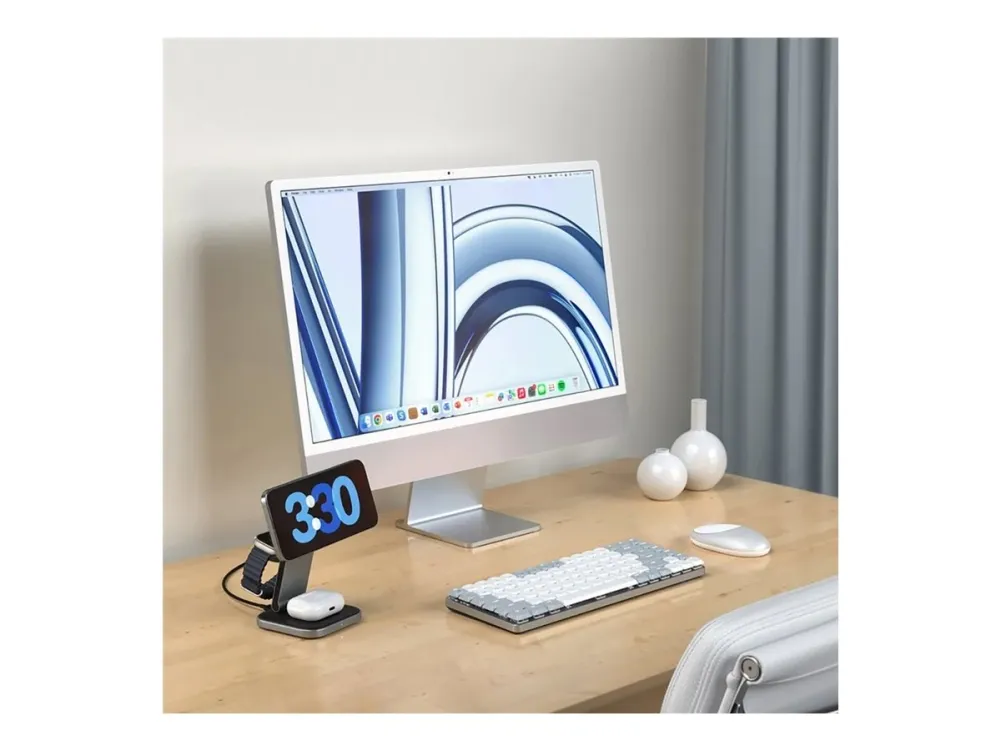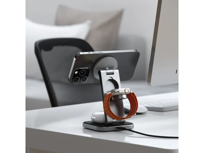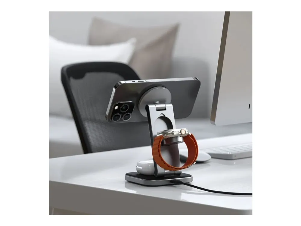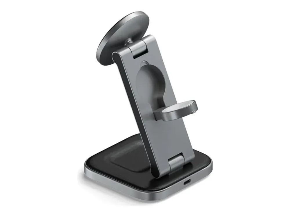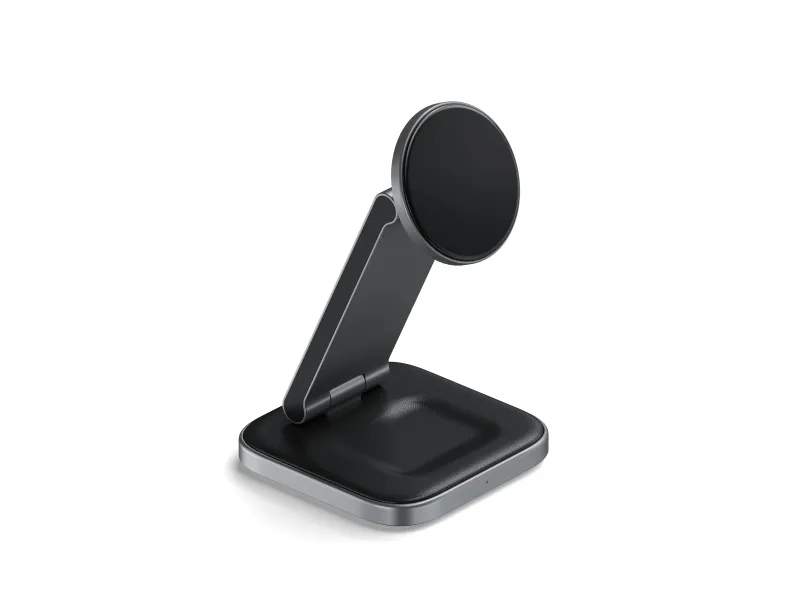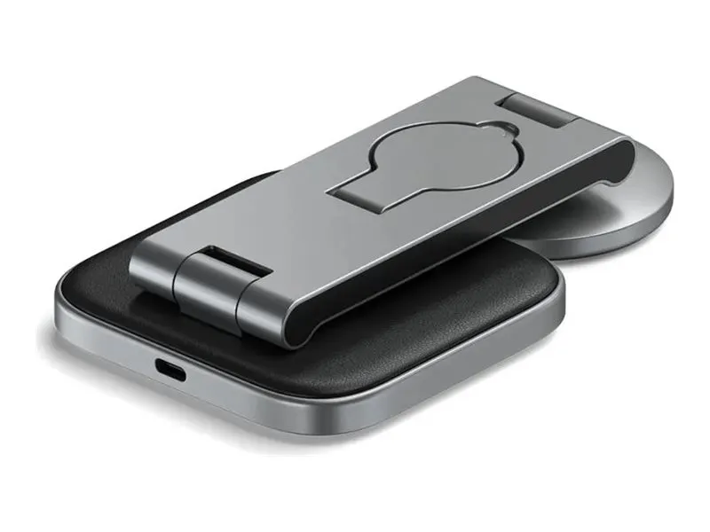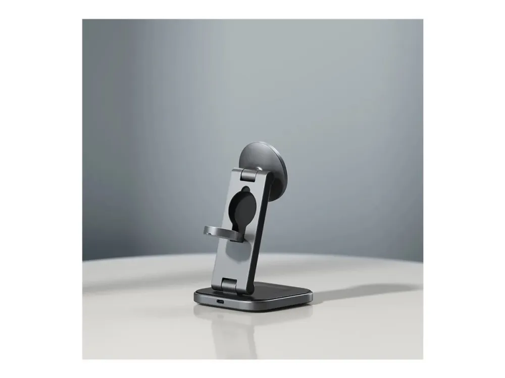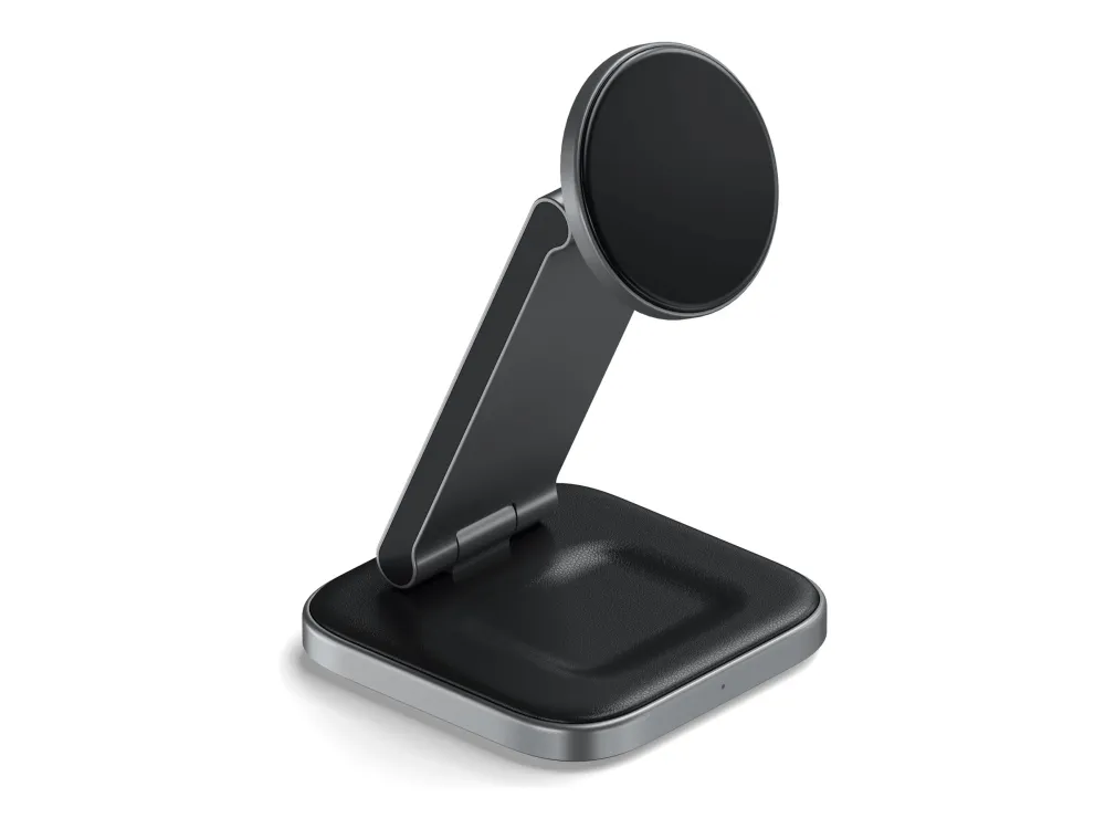 Yhteensopivuus MagSafe-järjestelmän kanssa takaa, että laitteesi ovat aina turvallisesti kytkettyinä, ja sisäänrakennetut magneetit lisäävät vakautta. Ensiluokkaisesta alumiinista valmistettu ja vegaaninahkaisella alustalla varustettu latausteline on paitsi toimiva myös tyylikkäästi suunniteltu täydentämään mitä tahansa ympäristöä. Työskenteletpä sitten työpöydän ääressä tai rentoudut kotona, Satechin langaton latausteline on ratkaisusi tehokkaaseen ja tyylikkääseen laitteiden lataamiseen.