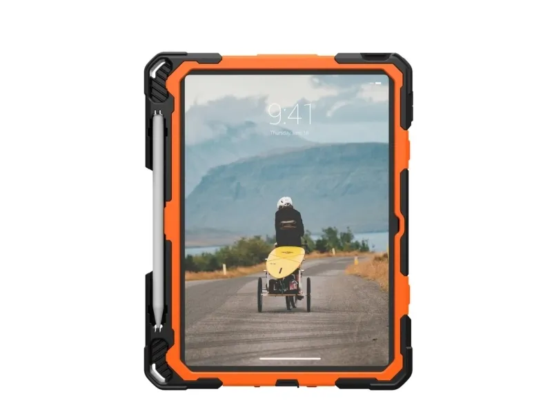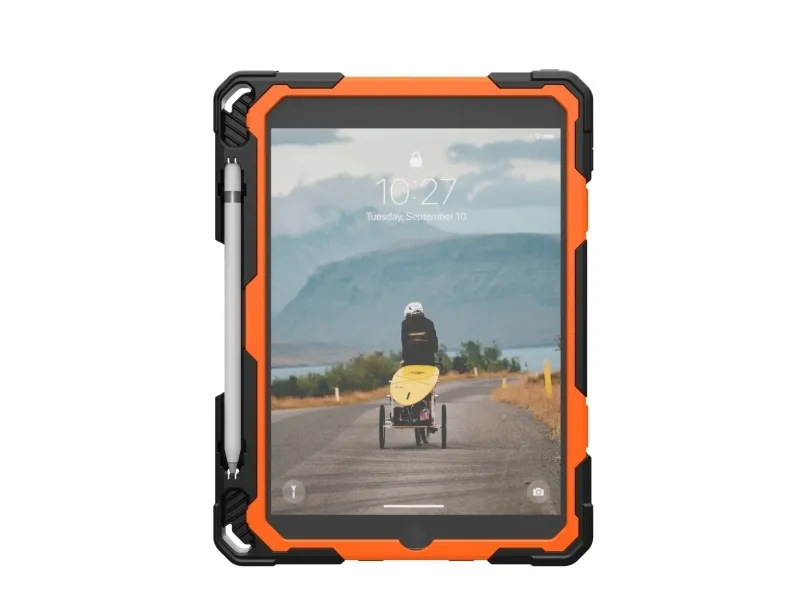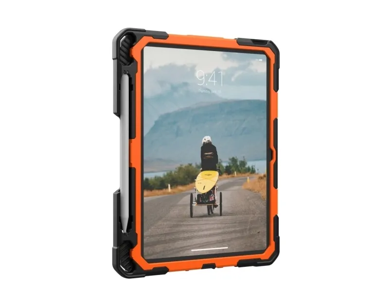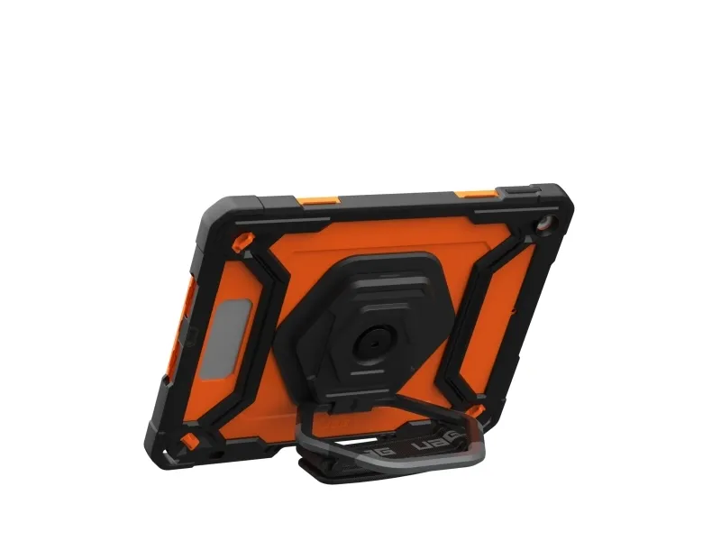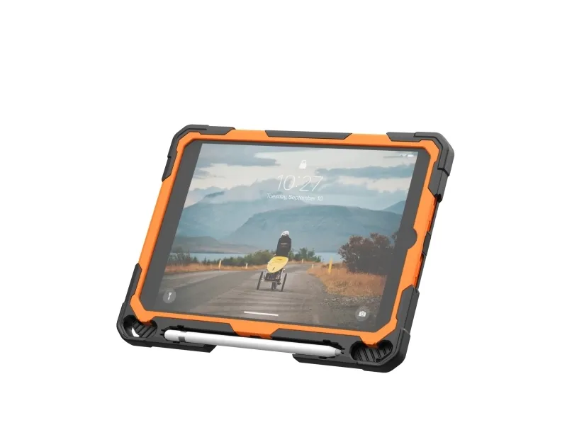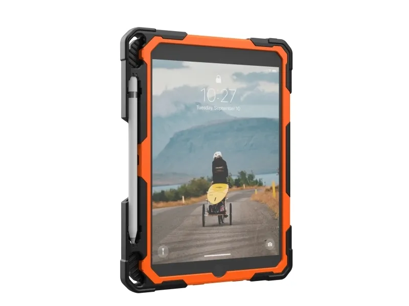 Urban Armor Gear UAG Plasma for iPad 10.9 10G in Orange/Black is built for those who push their devices to the limit. With rugged protection all-day usability and a design made for real work in the field this case keeps your iPad safe secure and easy to handle wherever you go.360-degree rotational hand strap and kickstand for secure flexible useRugged drop protection tested to military standardBuilt-in screen protector and covered ports for all-around defenseIntegrated holder for Apple Pencil (1st Gen) and Logitech CrayonMedical grade wipe tested and compatible with UAG shoulder strap360-degree rotational hand strap and kickstand for secure flexible use Stay in control of your iPad whether you are standing commuting or moving between rooms. The built-in 360-degree rotational hand strap lets you securely hold your device in one hand adjusting the angle on the fly for viewing typing or capturing content. When you need hands-free use the integrated kickstand props your iPad at a comfortable angle for work video calls or presentations without needing an extra accessory. Rugged drop protection tested to military standard The Plasma Series is engineered for serious protection. It is MIL-STD-810G 516.6 certified meaning it has passed rigorous testing for drops from up to 1.2 meters. The impact-resistant core and reinforced corners help absorb shocks and bumps protecting your iPad from everyday accidents whether you are in the office classroom hospital or on the move. Built-in screen protector and covered ports for all-around defense Your display and connection points are fully protected without compromising usability. The built-in screen protector shields the touchscreen from scratches and scuffs while maintaining clarity and touch sensitivity. Covered ports buttons and speakers help keep dust and debris out extending the life of your device and ensuring it continues to perform as it should in demanding environments. Integrated holder for Apple Pencil (1st Gen) and Logitech Crayon Never lose track of your stylus again. A dedicated holder keeps your Apple Pencil (1st Gen) or Logitech Crayon secure and close at hand so it is always ready when inspiration strikes or when it is time to take notes. This integrated storage means fewer loose accessories to manage and a more streamlined professional setup. Medical grade wipe tested and compatible with UAG shoulder strap Designed for environments where cleanliness and mobility matter this case is medical grade wipe tested so you can safely disinfect it with medical wipes without damaging the materials. It is also compatible with the UAG shoulder strap (sold separately) giving you an easy hands-free way to carry your iPad during long shifts site visits or travel while keeping it quickly accessible. Package includesUAG Plasma for iPad 10.9 10G case Orange/Black (bulk packed) - Orange/BlackProduct specifications:Brand: Urban Armor GearSeries: PlasmaColor: Orange/BlackCompatible devices: iPad 10.9 inch (approx. 27.7 cm) 10th Generation (2022) Models: A2696 A2757 A2777 iPad 11 inch (approx. 27.9 cm) (A16) 11th Generation (2025) Models: A3354 A3355Drop protection: MIL-STD-810G 516.6 tested for drops up to 1.2 metersBuilt-in 360-degree rotational hand strapIntegrated kickstandBuilt-in screen protectorCovered ports buttons and speakersHolder for Apple Pencil (1st Gen) and Logitech CrayonCompatible with UAG shoulder strap (not included)Hygiene: Medical grade wipe testedPackaging: Bulk packed environmental packaging