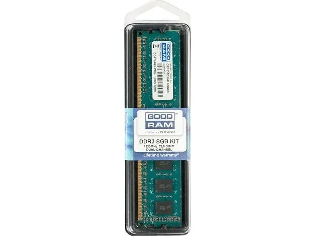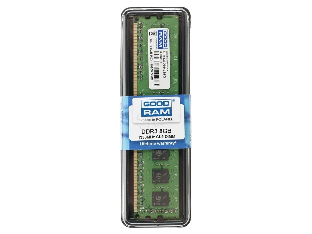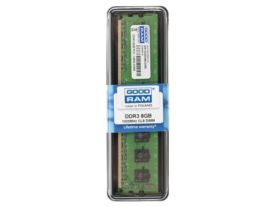 Goodram GR1333D364L9/8G, 8 GB, 1 x 8 GB, DDR3, 1333 MHz, 240-pin DIMM