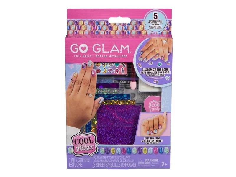 Shimmer and shine with Cool Maker Mix & Mani Foil Nails! This nail design kit will inspire creativity and build confidence as girls express their style, creating 5 shimmering foil manicures. It’s so easy to apply foil manicures with no nail polish needed! Lay the double-sided adhesive stickers on each nail, peel the backings, and smooth the edges with the included nail file. Next, choose from 6 different styles and colors of foil and apply directly onto the nail adhesive with the easy-to-use applicator. Girls can decorate their nails with the super cute nail stickers for the ultimate customization and show off their new look with their friends! To remove the foil manicure, it’s easy to do – simply peel off and create a whole new manicure! For more ways to create with Cool Maker, look for the PopStyle Bracelet Maker (each sold separately). Whether you’re looking for birthday gifts for girls, an art kit, kids crafts or exciting kids activities for sleepovers, spa days, back-to-school, rainy days or anytime, Cool Maker Mix & Mani Foil Nails is a welcome addition to the DIY fun!