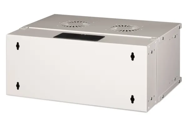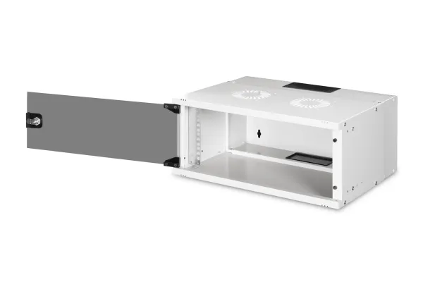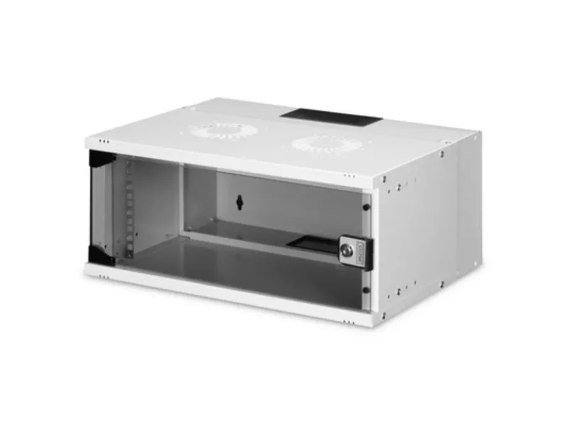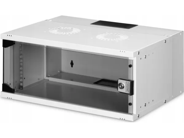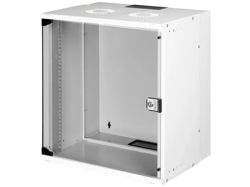 The Digitus SOHO PRO Series DN-49200 cabinet is designed for efficient organization and protection of electronic equipment. With dimensions of 540 x 400 mm, this wall-mountable enclosure offers an adjustable depth feature, suitable for various installation requirements. The robust steel construction, combined with a lockable glass door, ensures safety and accessibility while maintaining a sleek appearance. This cabinet is equipped with passive ventilation and cable entry points, allowing for an organized and tidy setup. The 4 rack units provide ample space for equipment, supporting a total weight limit of 60 kg. This product accommodates standard 19" rack sizes, providing versatility in equipment placement. With its powder coat finish and galvanized rails, durability and longevity are ensured, allowing for optimal performance in a variety of environments.