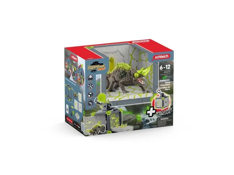 The Stone Chameleon has expanded his BattleCave into a real fortress to protect the World Crystal inside from thieves. With its oversized eyes, it can see from afar when attackers are approaching. Time to bring the catapult on the roof into position and put in the ammunition. Better take cover from the big orb coming your way! The Chameleon is a pretty good shot and can also attach the catapult to the side of the BattleCave if needed. The ELDRADOR® CREATURES BattleCaves transform every children's room into an action zone! Who will face the breathtaking battle? All BattleCaves can be combined. Scary tunnels, and tricky traps await the attackers. In the big arena they can then meet for the final duel. What a fight!