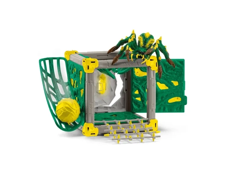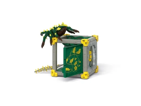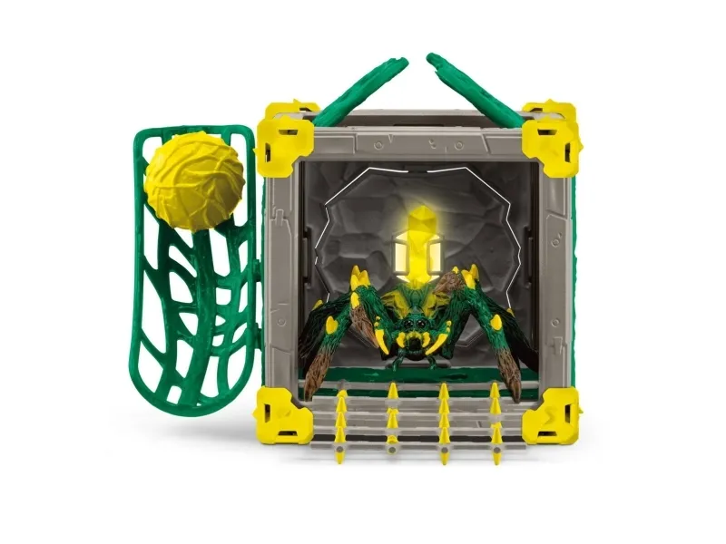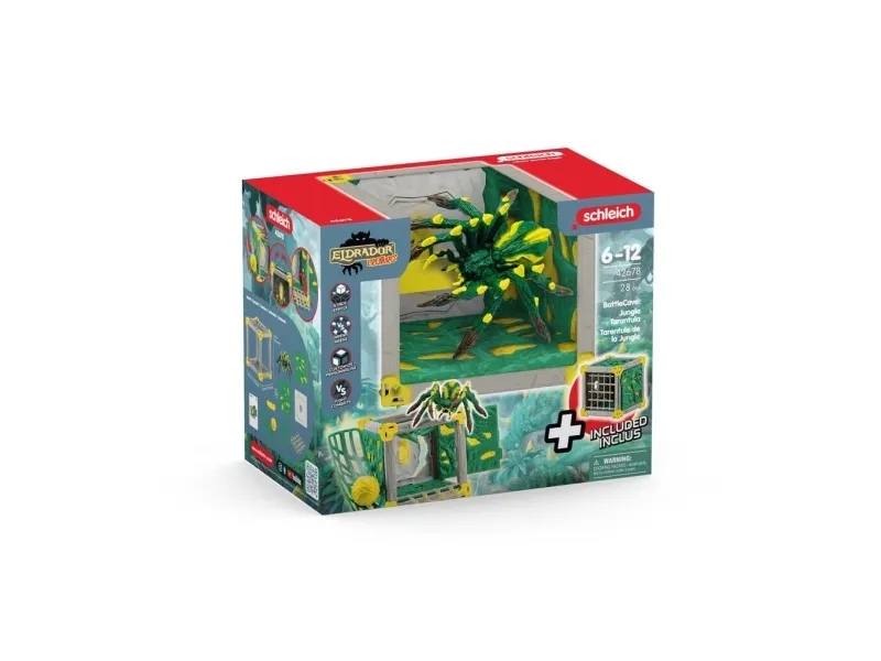 The Jungle Tarantula is a dangerous enemy to have. Its poisonous bite is feared. No wonder it was chosen to protect the World Crystal in its BattleCave! Every day, it lies in wait for the attackers and rolls over them with a big orb. It drops them down the chute right onto its enemies. And don't even try to trick the Jungle Tarantula and enter via the roof! There's a hidden trapdoor under the vines. If you step on it, you'll fall right into its poisonous arms. Nasty! The ELDRADOR® CREATURES BattleCaves transform every children's room into an action zone! Who will face the breathtaking battle? All BattleCaves can be combined. Scary tunnels, and tricky traps await the attackers. In the big arena they can then meet for the final duel. What a fight!