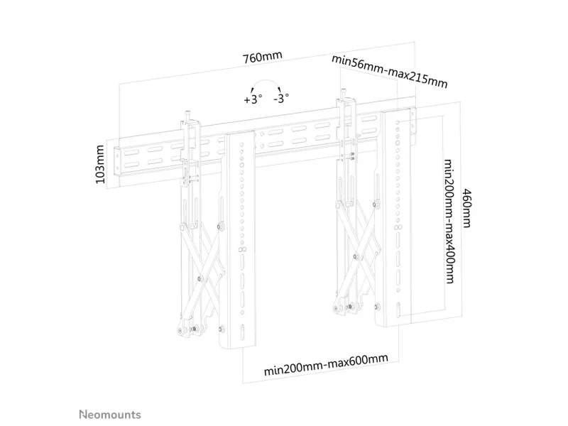 The Neomounts wall mount, model LED-VW1000BLACK is a fixed wall mount for flat screens up to 75" (191cm). This mount is a great choice when you want the ultimate viewing flexibility with your flat screen. Depth of this mount is 5.6 to 21.5 centimeters. This wall mount is specially made to be used in video walls. The screen easily can be pulled out. Neomounts LED-VW1000BLACK is suitable for flat screens up to 75" (191cm). The weight capacity of this product is 50kg each screen. The wall mount is suitable for screens that meet VESA hole pattern 200x200 to 600x400mm. Create a clean design video wall presentation with the Neomounts LED-VW1000BLACK video wall mount solution!