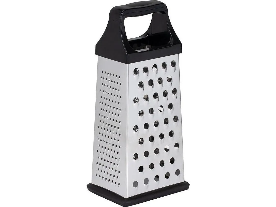 Solidly constructed, with rigid sides and a base that won’t easily slide out from under you, Sham graters will provide all the flakes, shreds, and shards you’ll ever need. Each side has a different size grating surface which grates evenly and effortlessly across its entire perforated surface.Resto Kitchenware 95410. Product type: Box grater, Product colour: Black, Stainless steel, Material: Silicone, Stainless steel. Width: 110 mm, Depth: 85 mm, Height: 255 mm