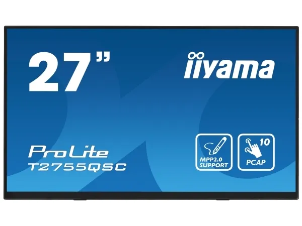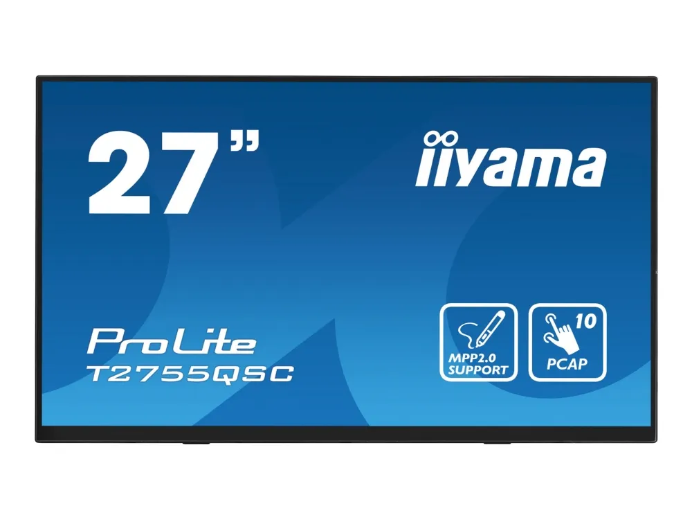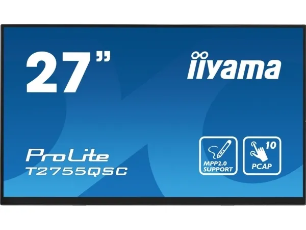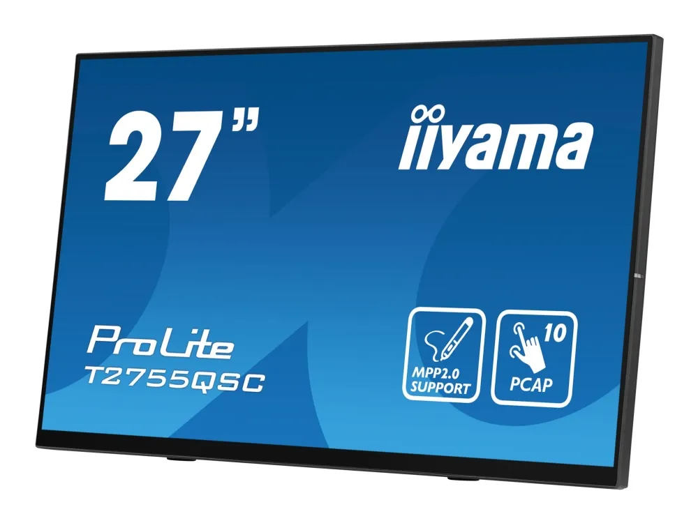 The ProLite T2755QSC with its WQHD (2560x1440) resolution and IPS panel technology offers exceptional colors and wide viewing angles. The Optical Bonded Projective Capacitive (PCAP) 10-point touch technology ensures a seamless and accurate touch response and a lower light reflection, in addition, the display is protected against humidity and potential moisture development. A special anti-fingerprint coating ensures a smoother touch and less resistance in the swipe. It makes the screen less static and susceptible to dirt, dust and fingerprints. The monitor supports MPP2.0 (Microsoft Pen Protocol) technology, which is used in digital pens and styluses for use with compatible devices. The pen or stylus can interact with the ProLite T2755QSC, allowing users to write, draw, and navigate on the screen. It is very precise and supports tilt functionality, meaning the users can adjust the thickness and angle of their lines by tilting the pen, providing a more natural and intuitive writing and drawing experience. Its flexible stand can be positioned at several angles creating a comfortable and ergonomic user experience. A perfect choice for a vast array of creative applications.iiyama ProLite T2755QSC-B1. Display diagonal: 68.6 cm (27"), Display resolution: 2560 x 1440 pixels, HD type: Quad HD, Display technology: LCD, Response time: 5 ms, Native aspect ratio: 16:9, Viewing angle, horizontal: 178°, Viewing angle, vertical: 178°. Built-in speaker(s). Built-in USB hub, USB hub version: 3.2 Gen 1 (3.1 Gen 1). VESA mounting. Product colour: Black